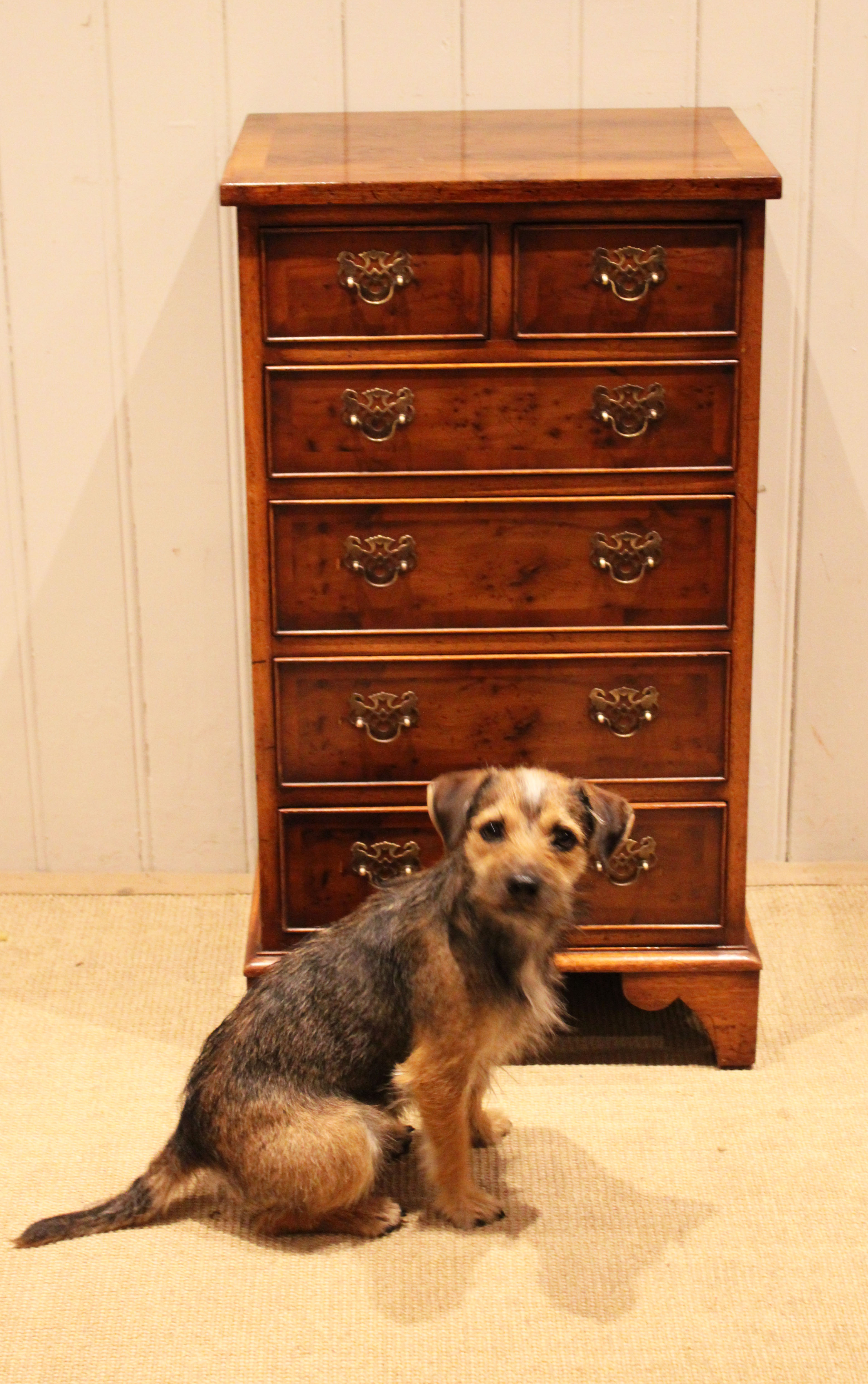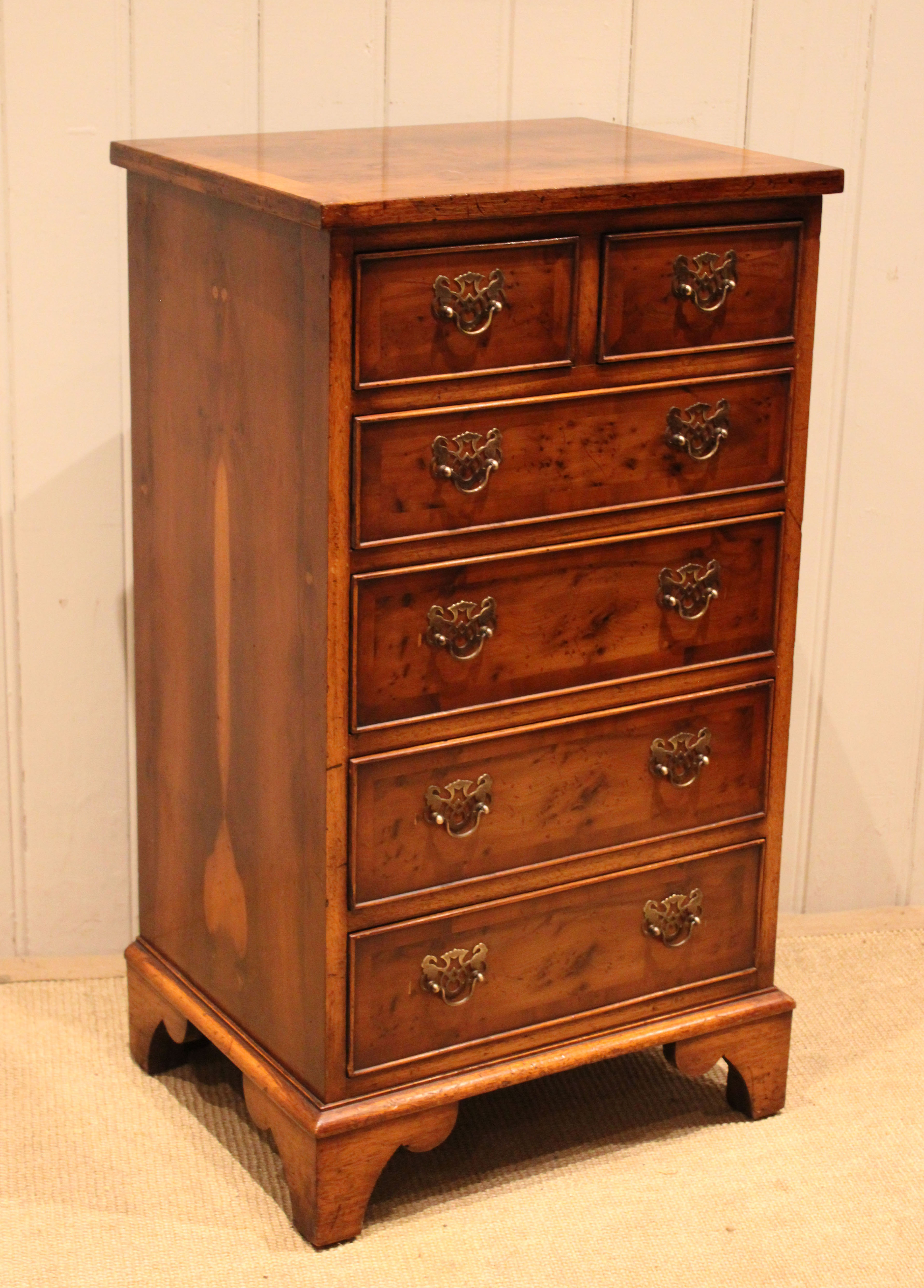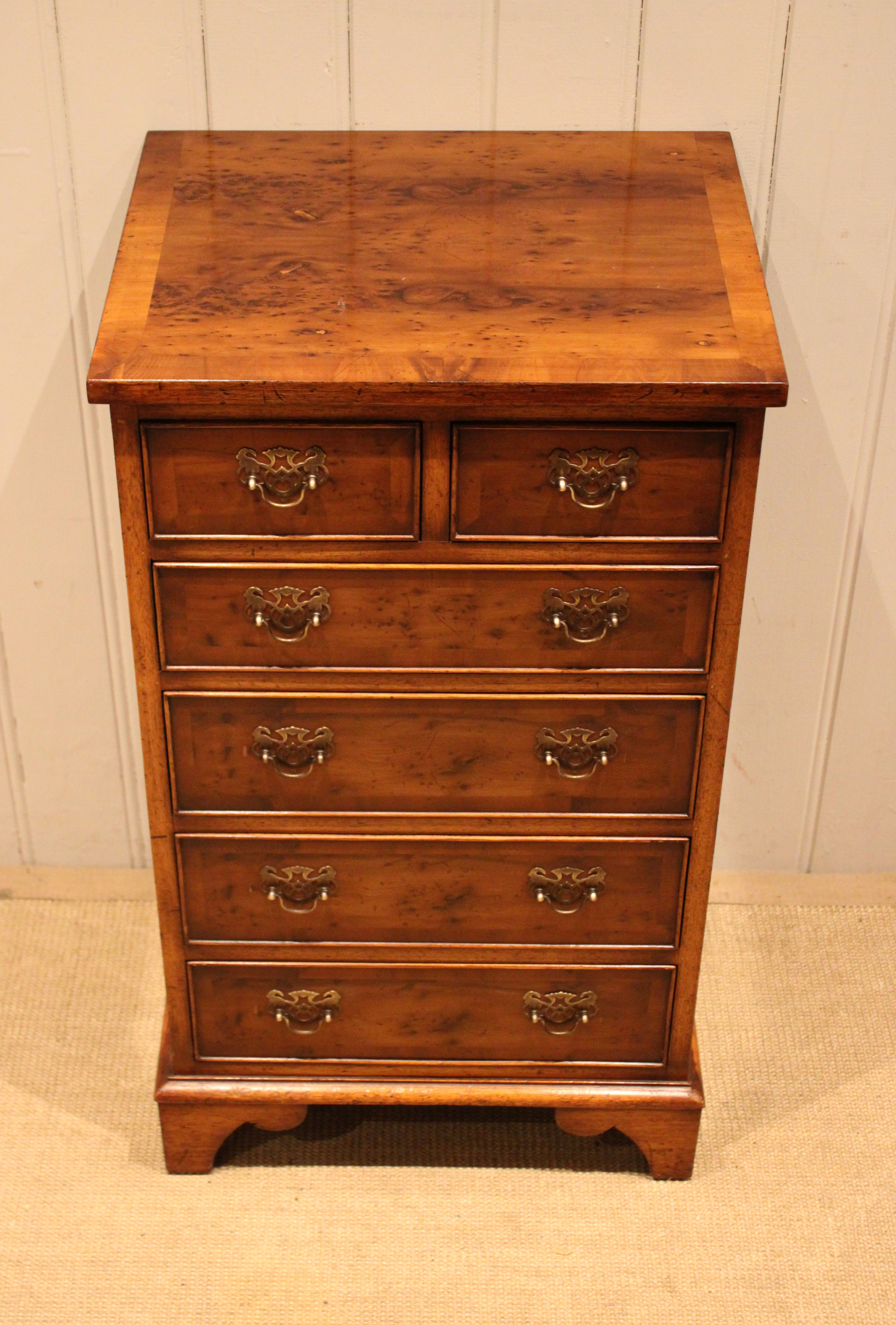 Burr Yew Small Slim Chest Of Drawers