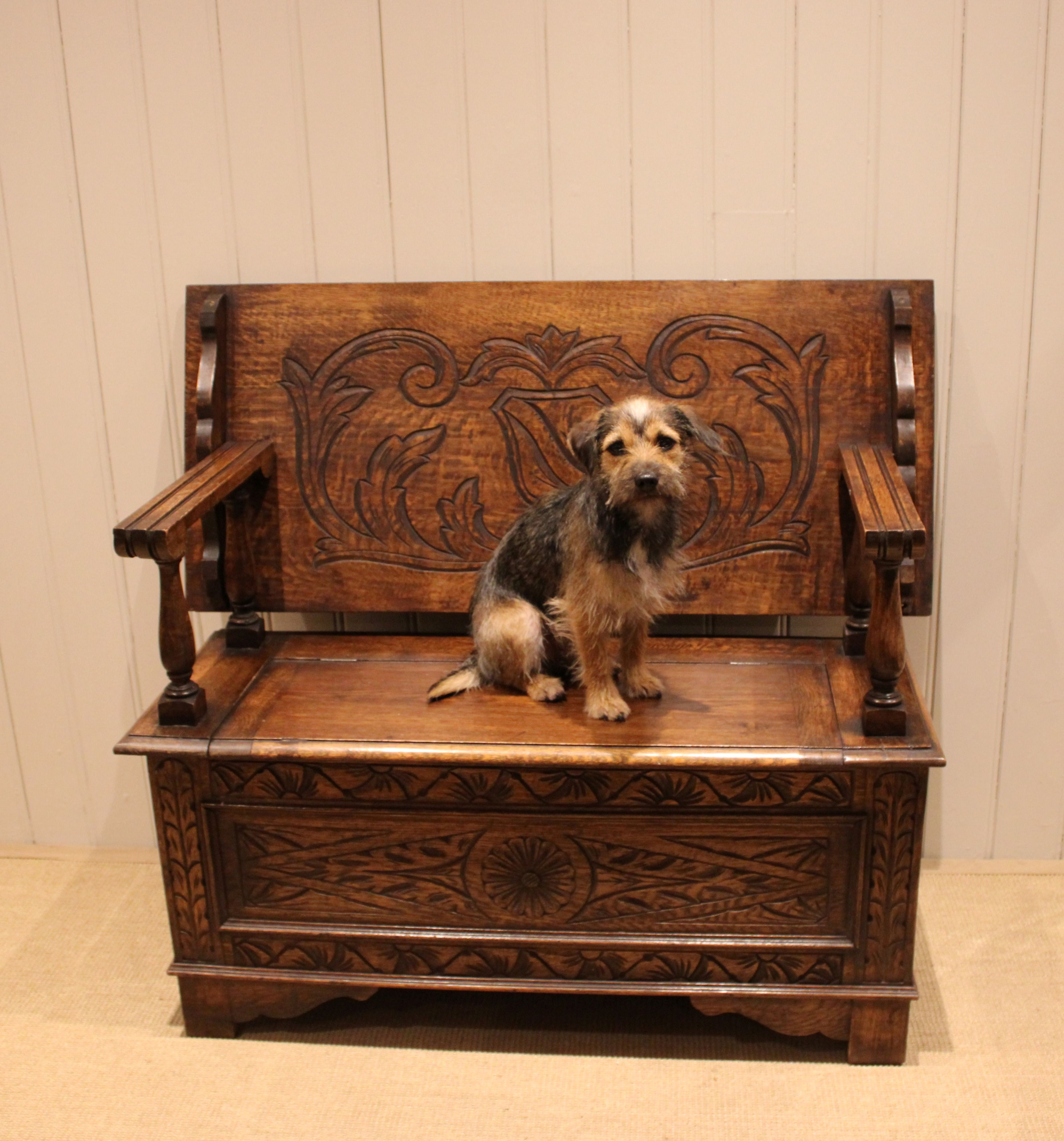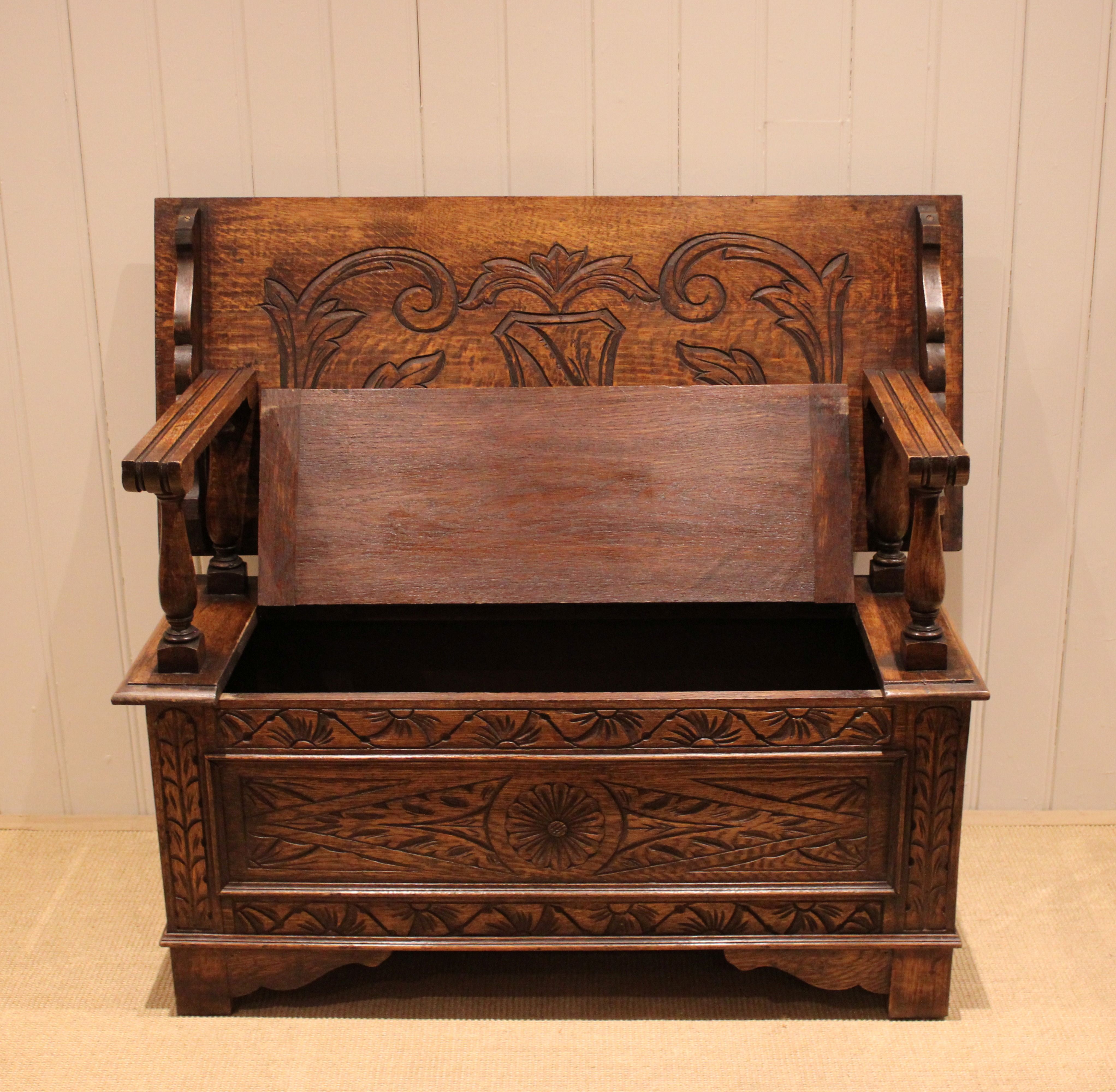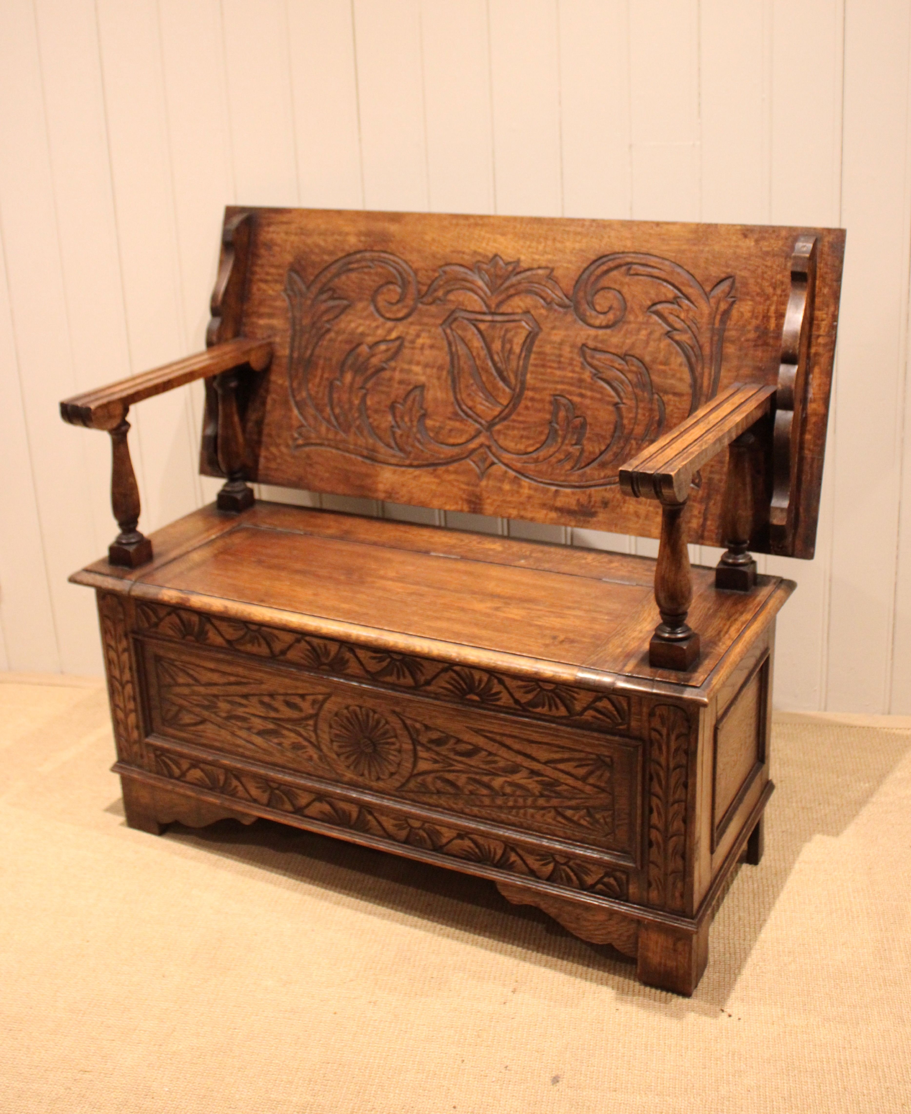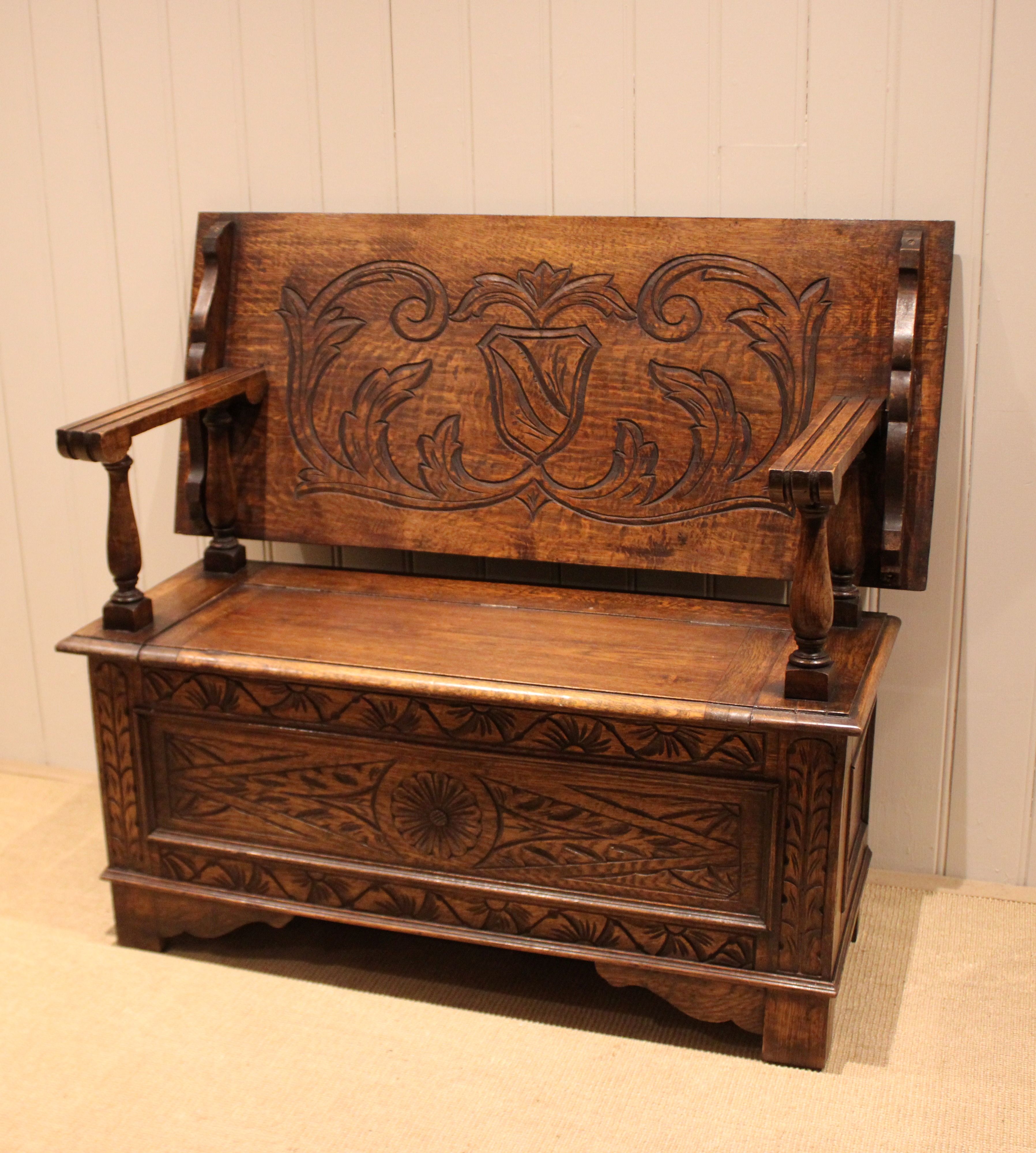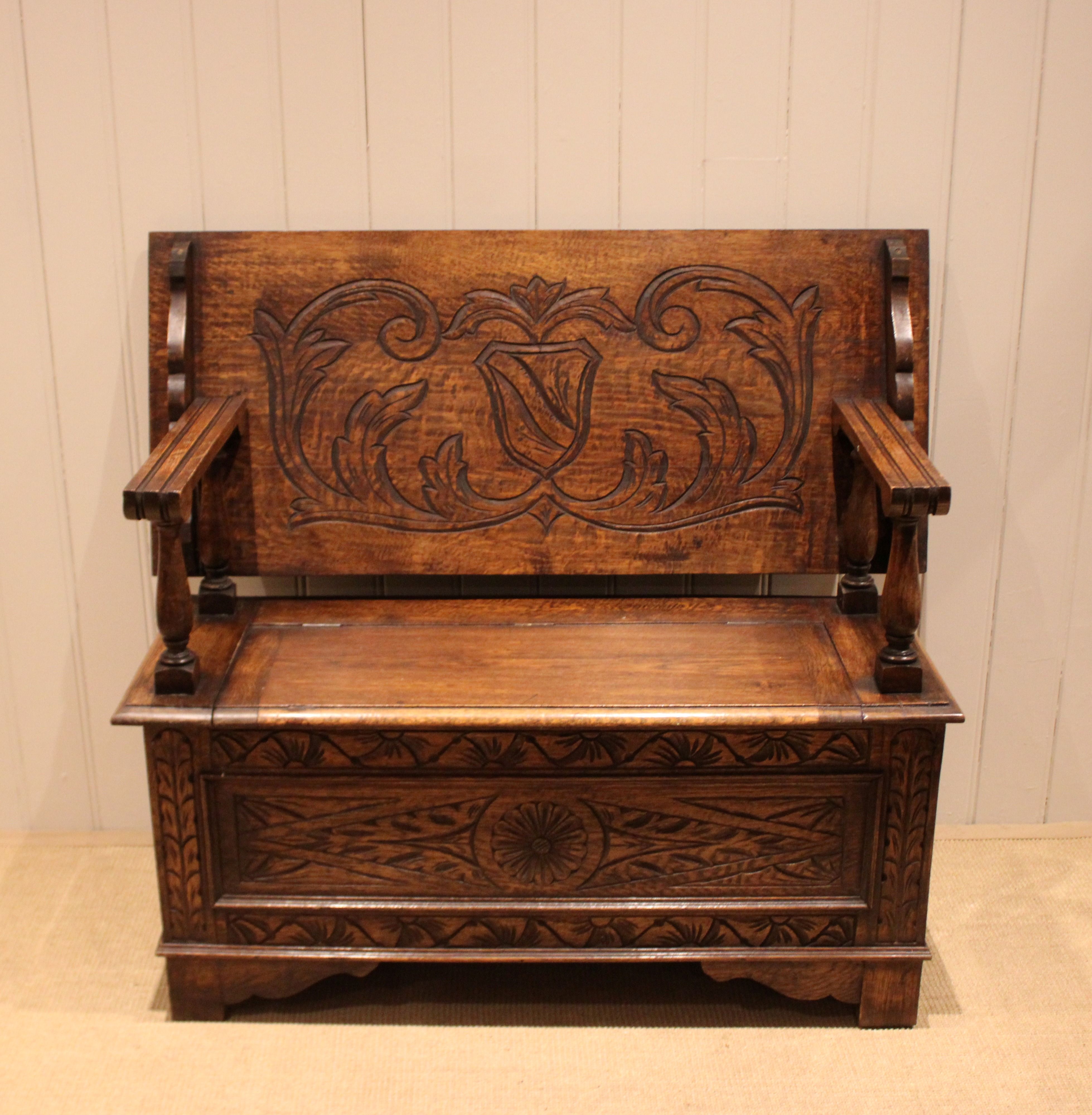 Carved Oak Monks Bench