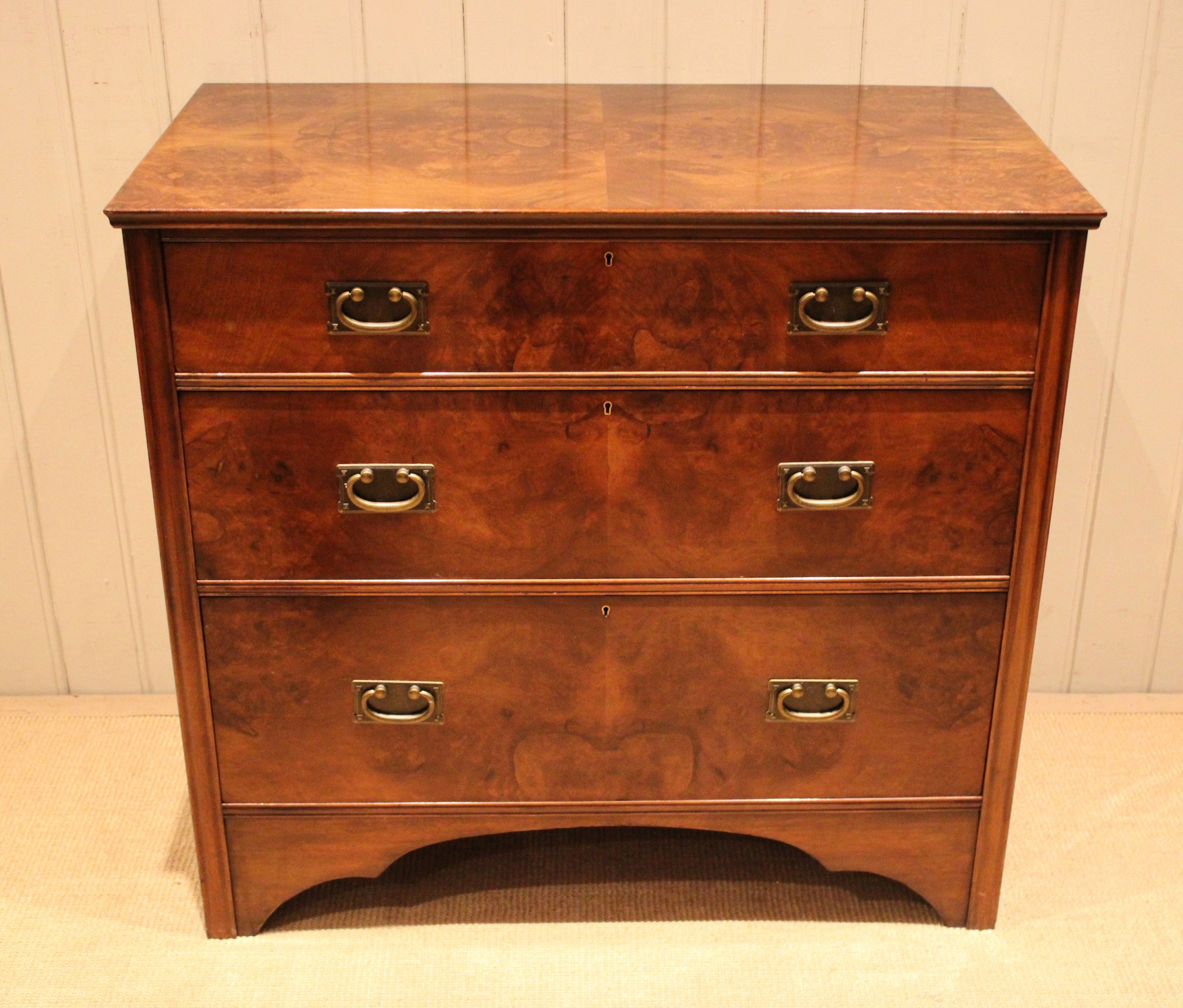 Gothic low oak chest of drawers having carved sides with turned wooden handles raised on turned wooden legs