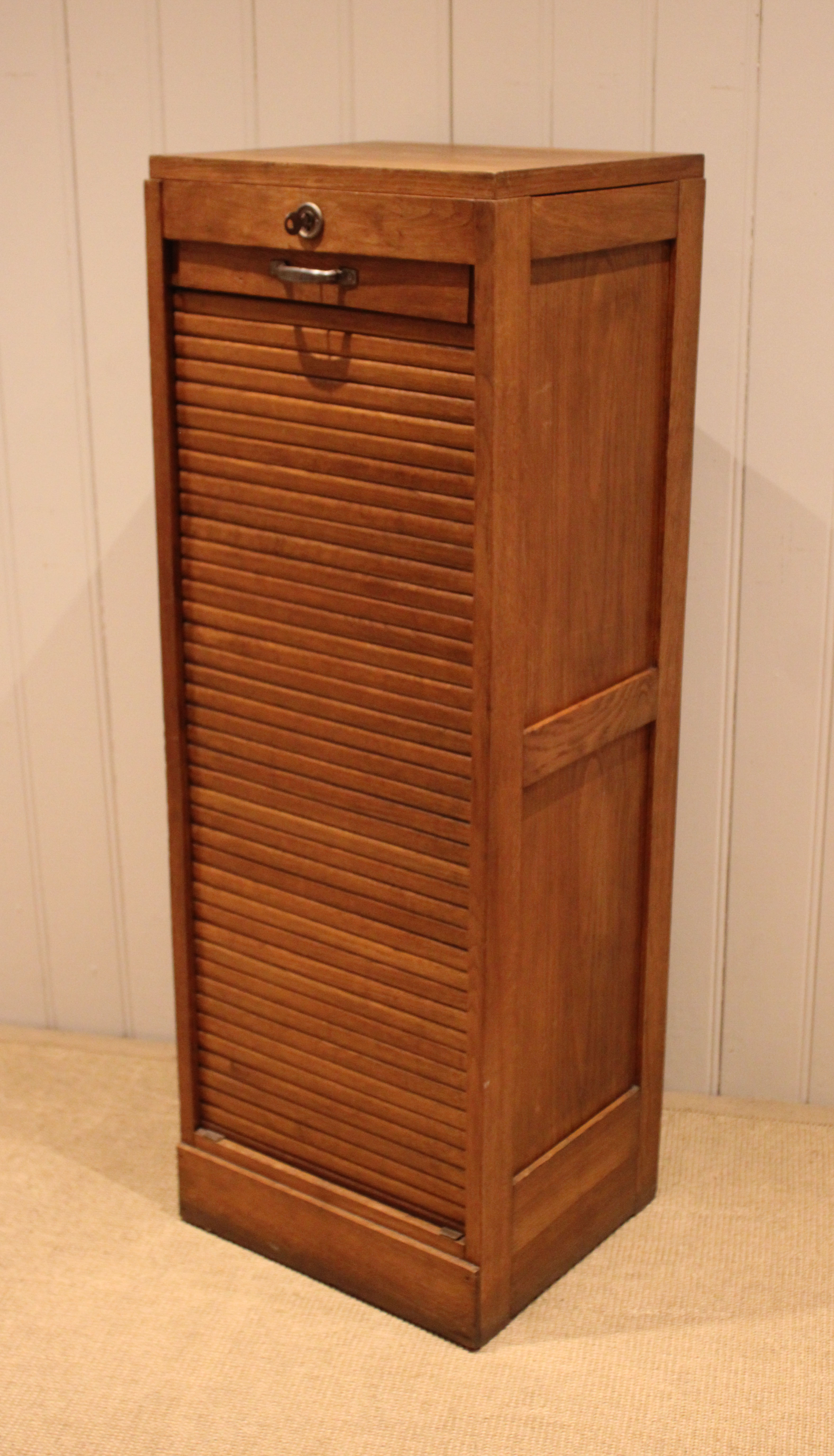 French Oak Single Tambour Front Filing Cabinet