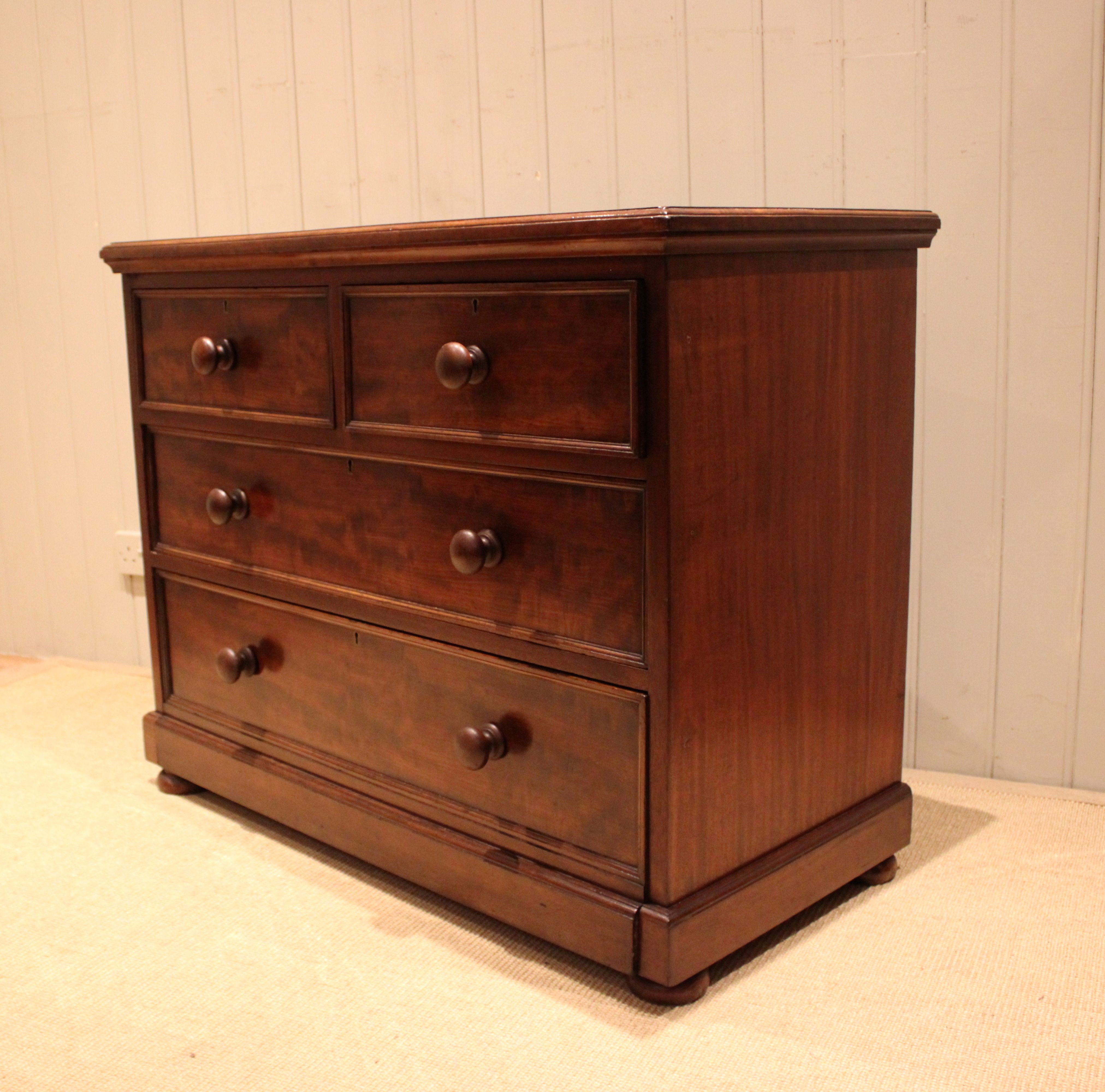 Late 19th Century Low Solid Mahogany Chest Of Drawers
