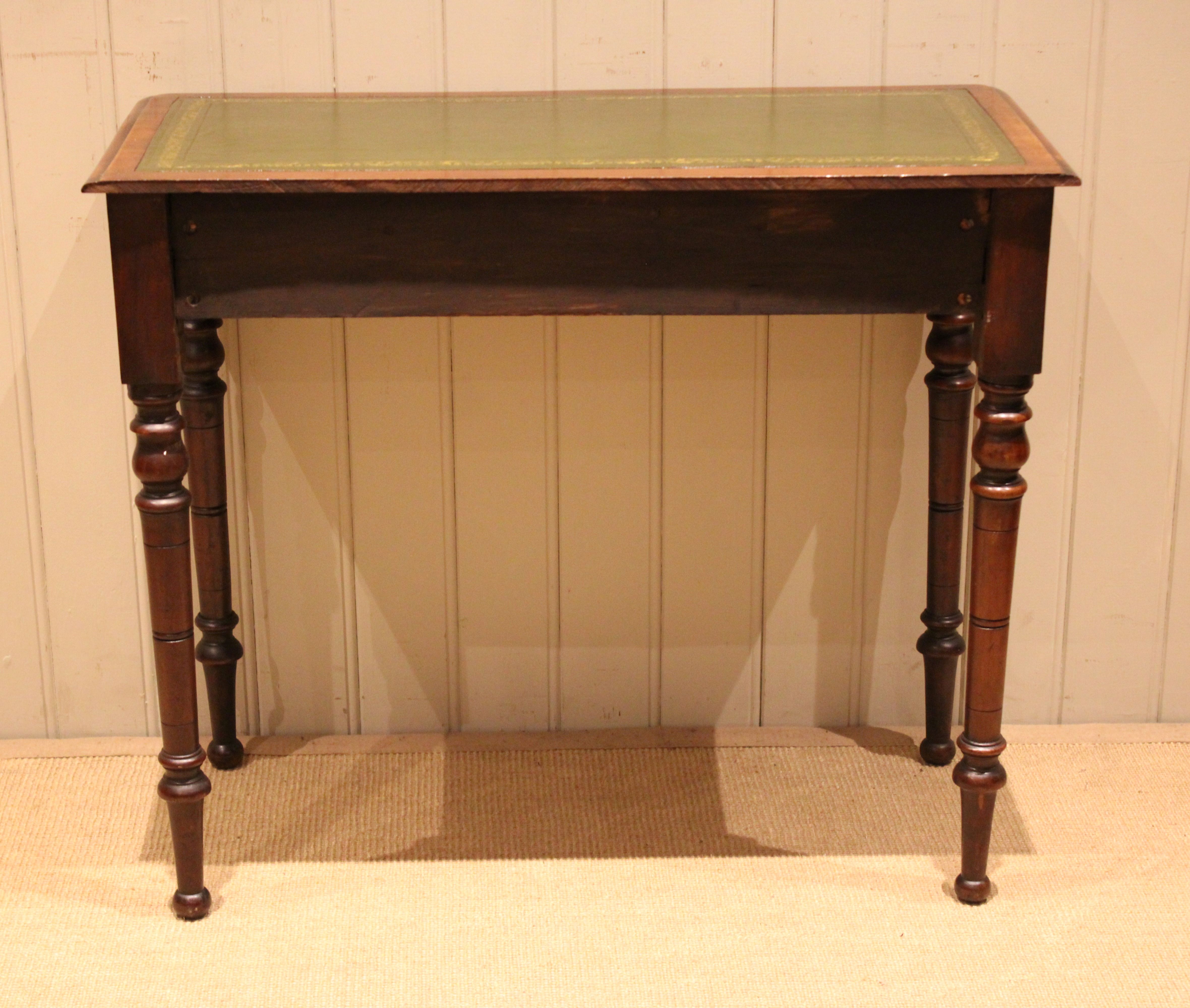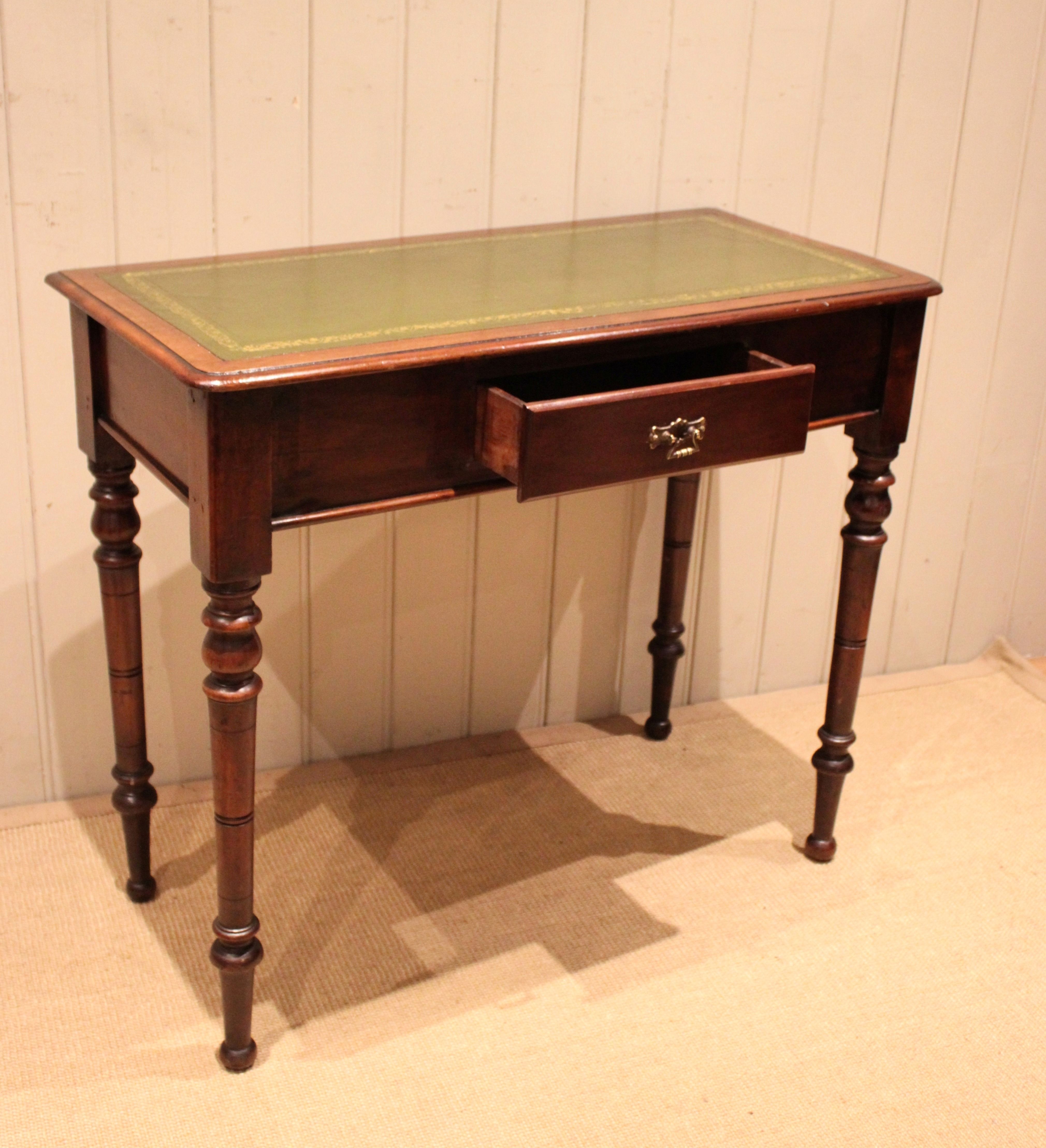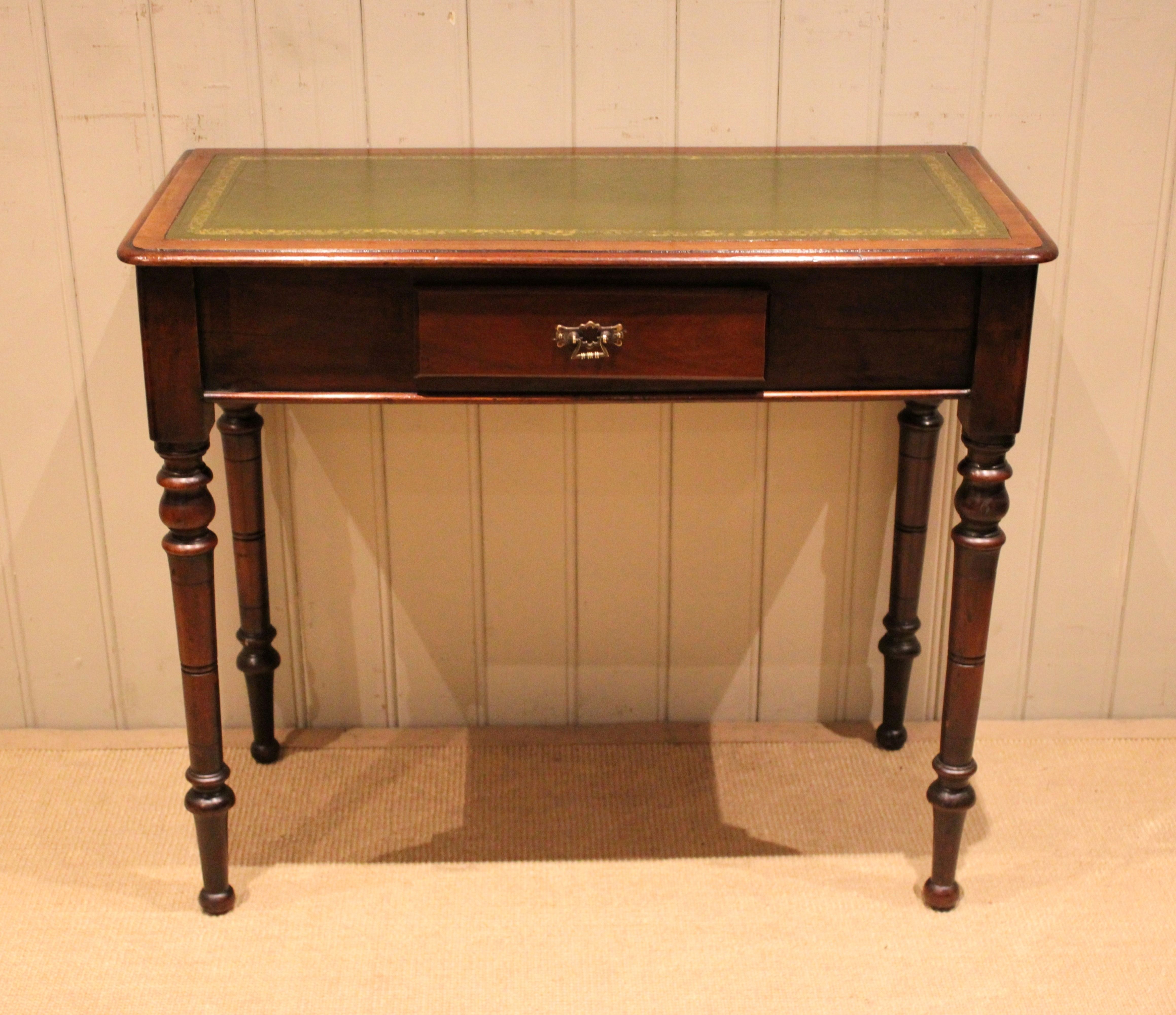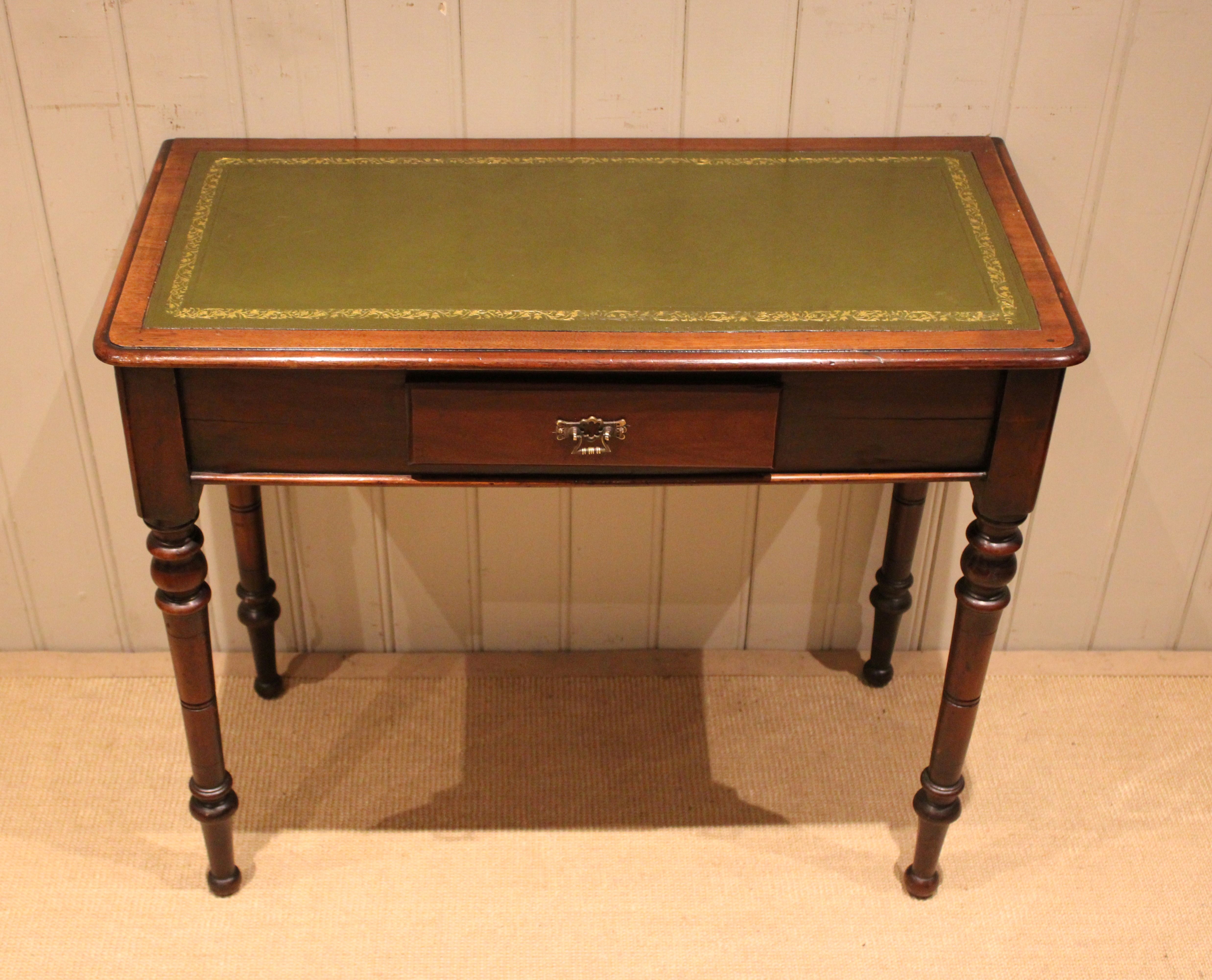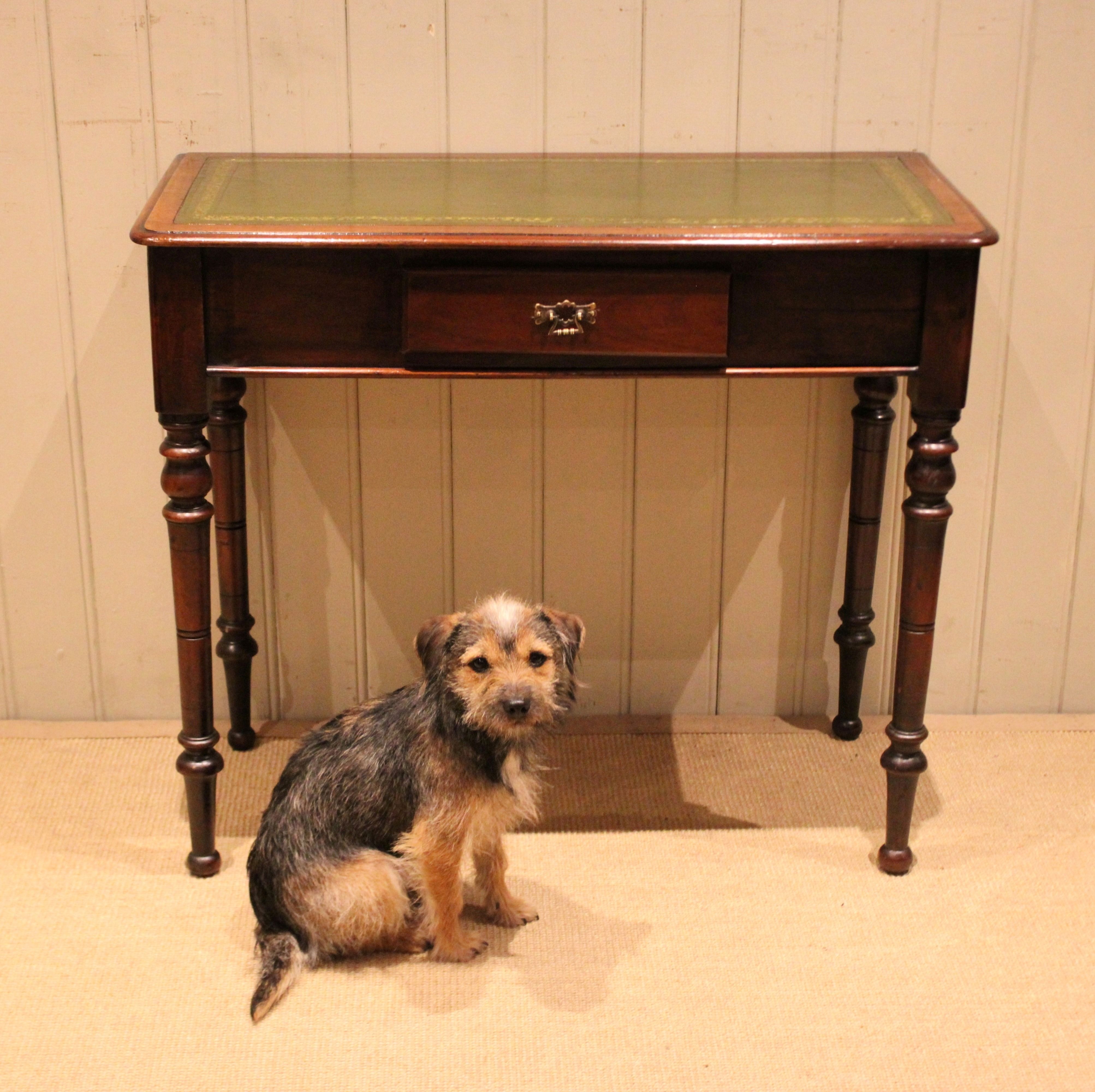 Late 19th century mahogany hall table having a leather top with a single drawer , raised on turned tapering legs . The height to the under tier is 59.5 cm