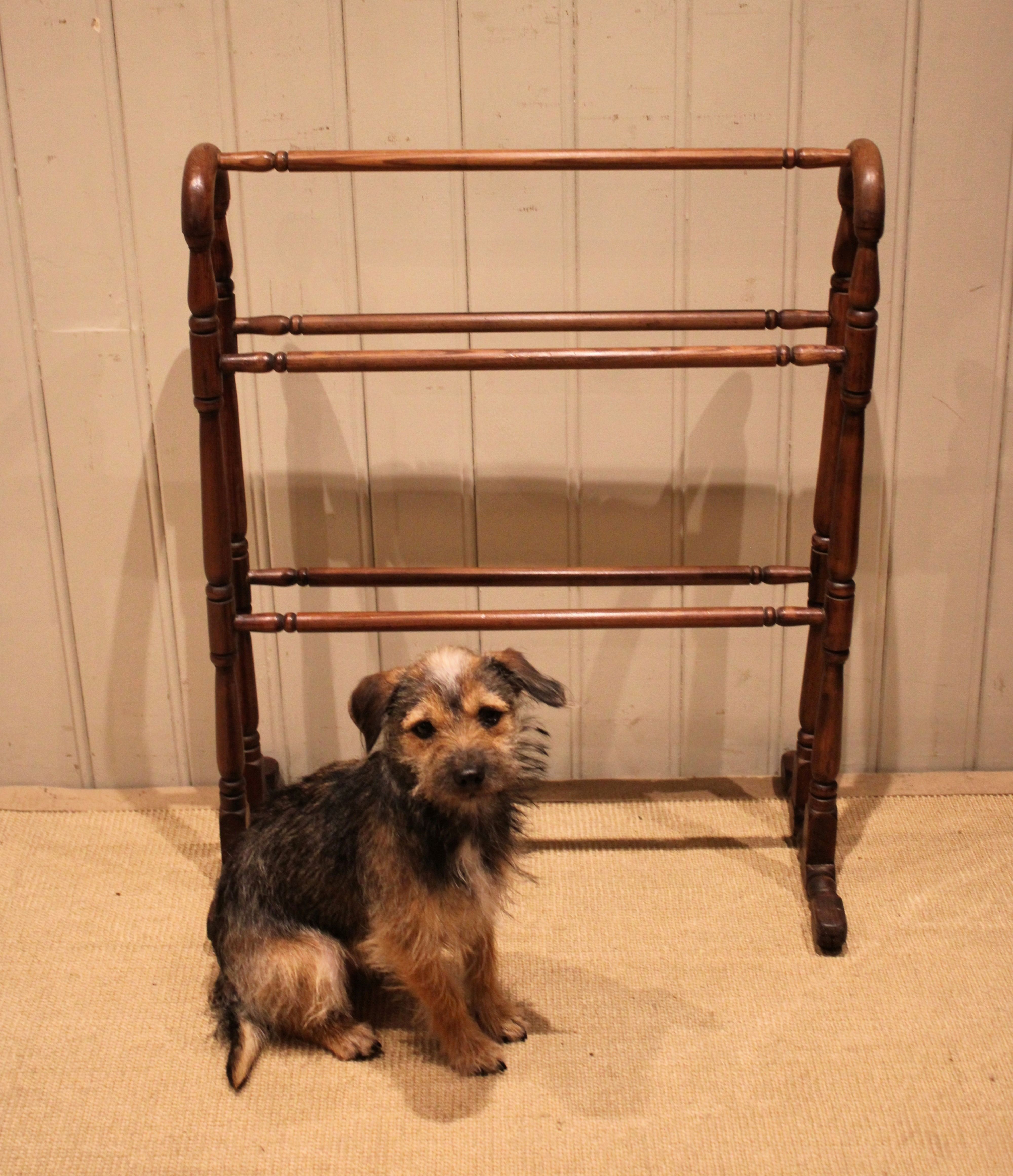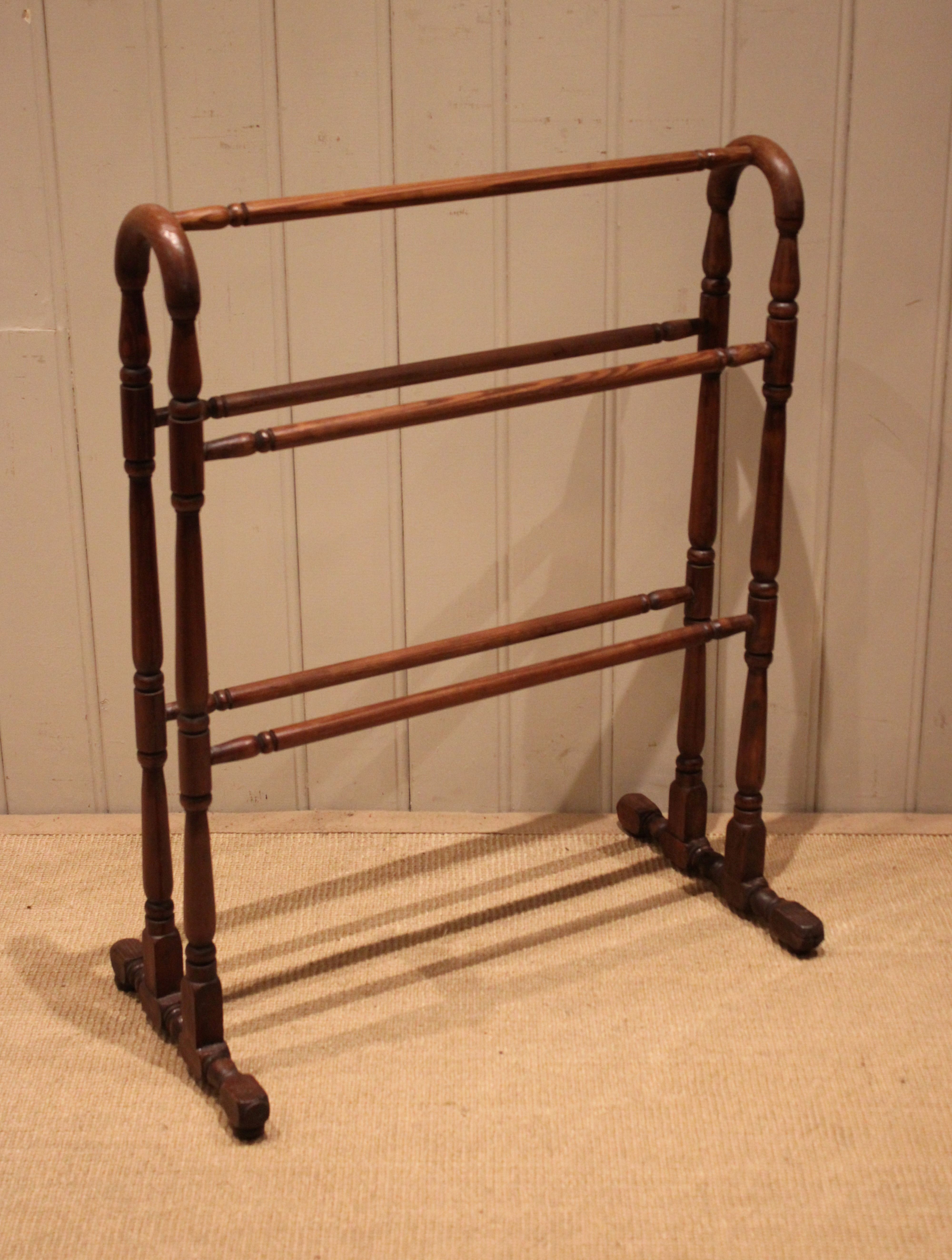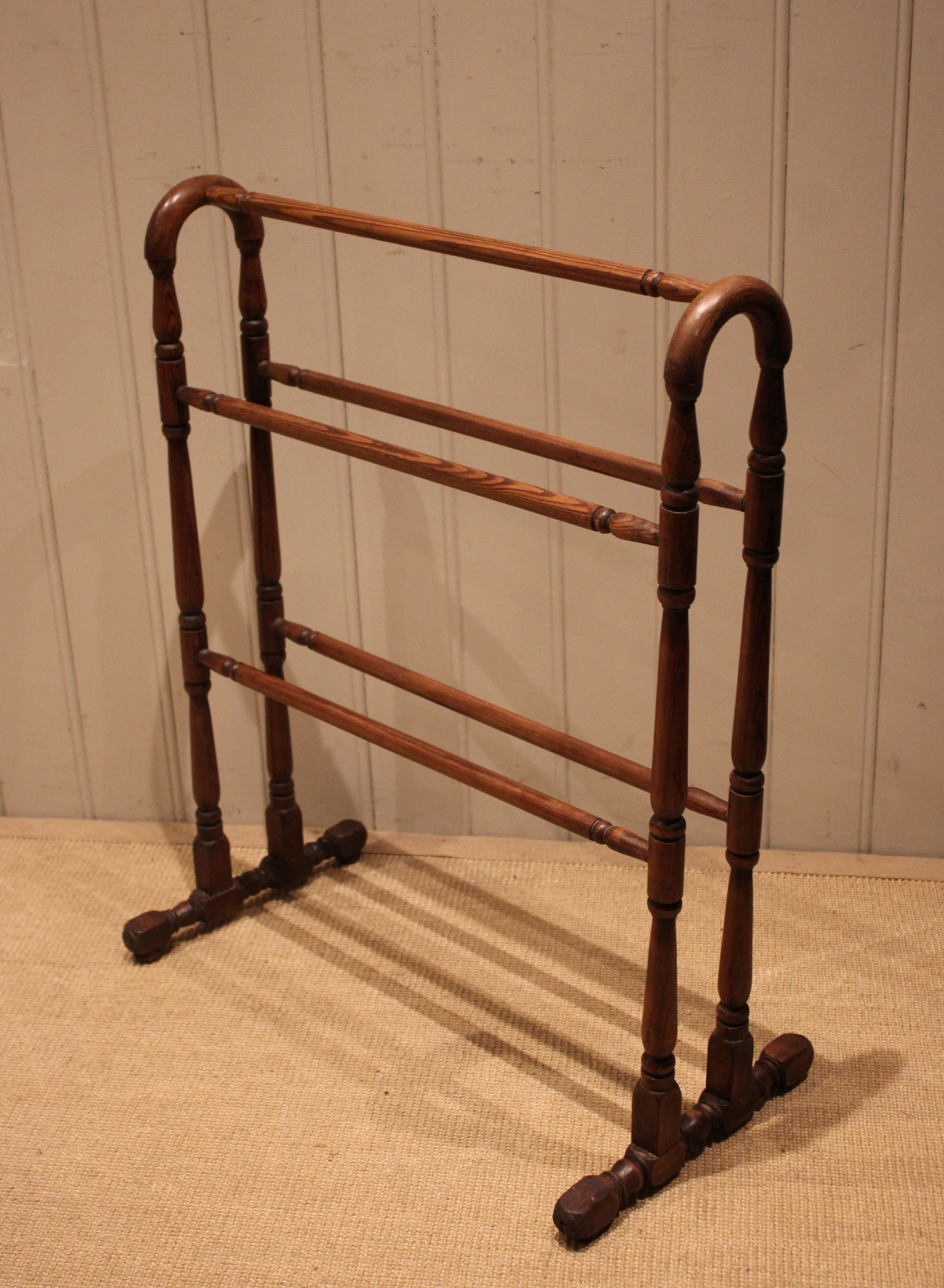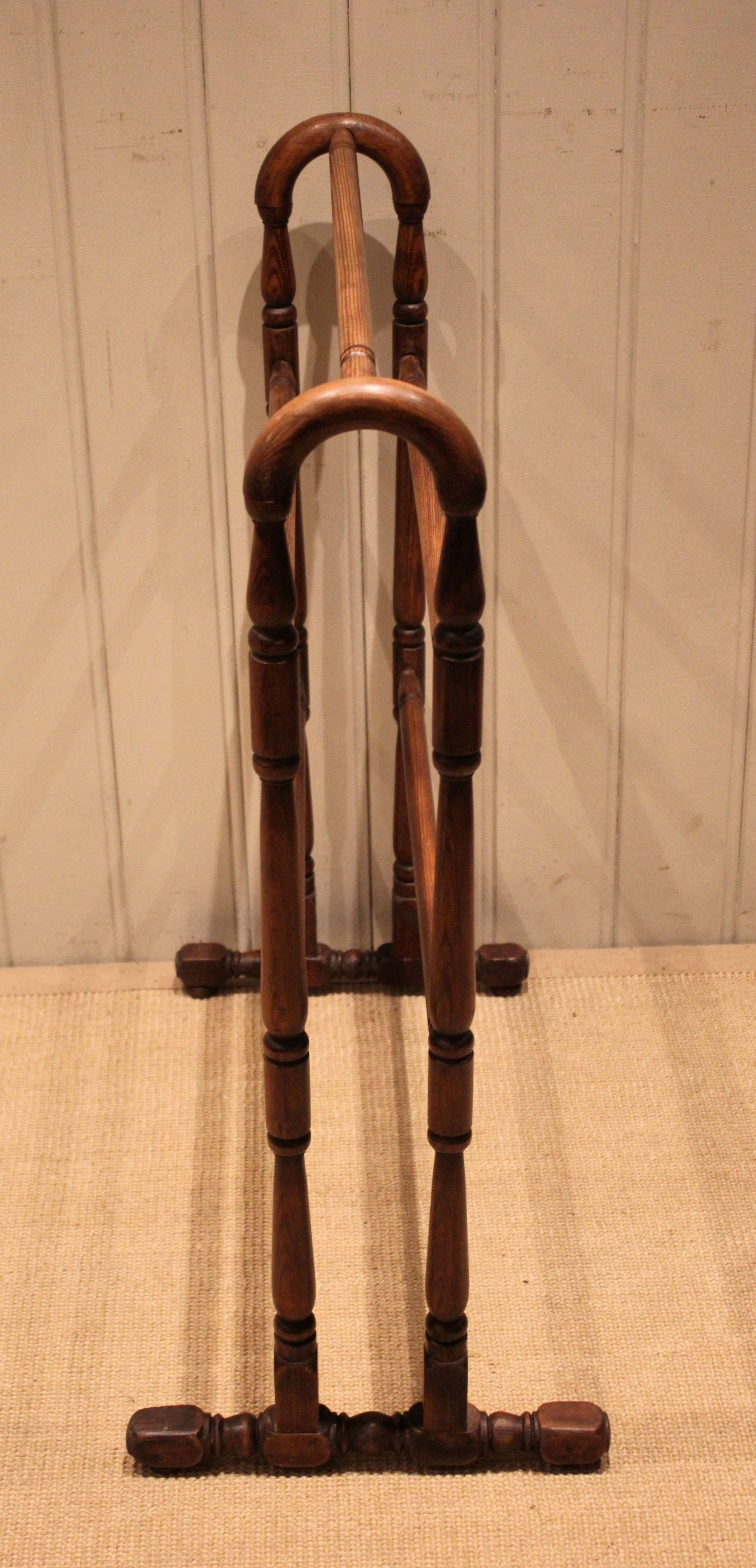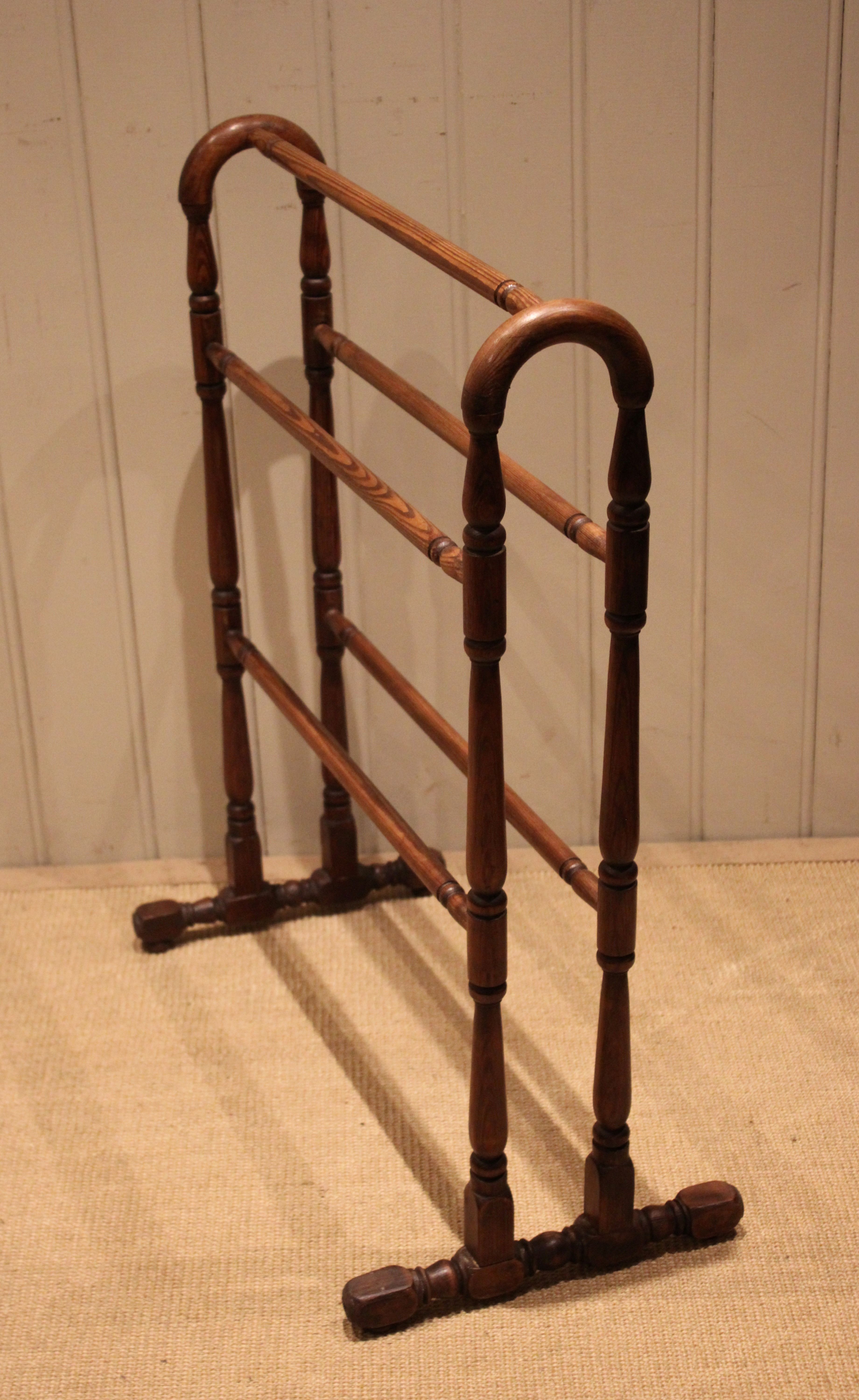 Late 19th Century pitch pine towel rail having five hanging rails with carved and moulded supports .