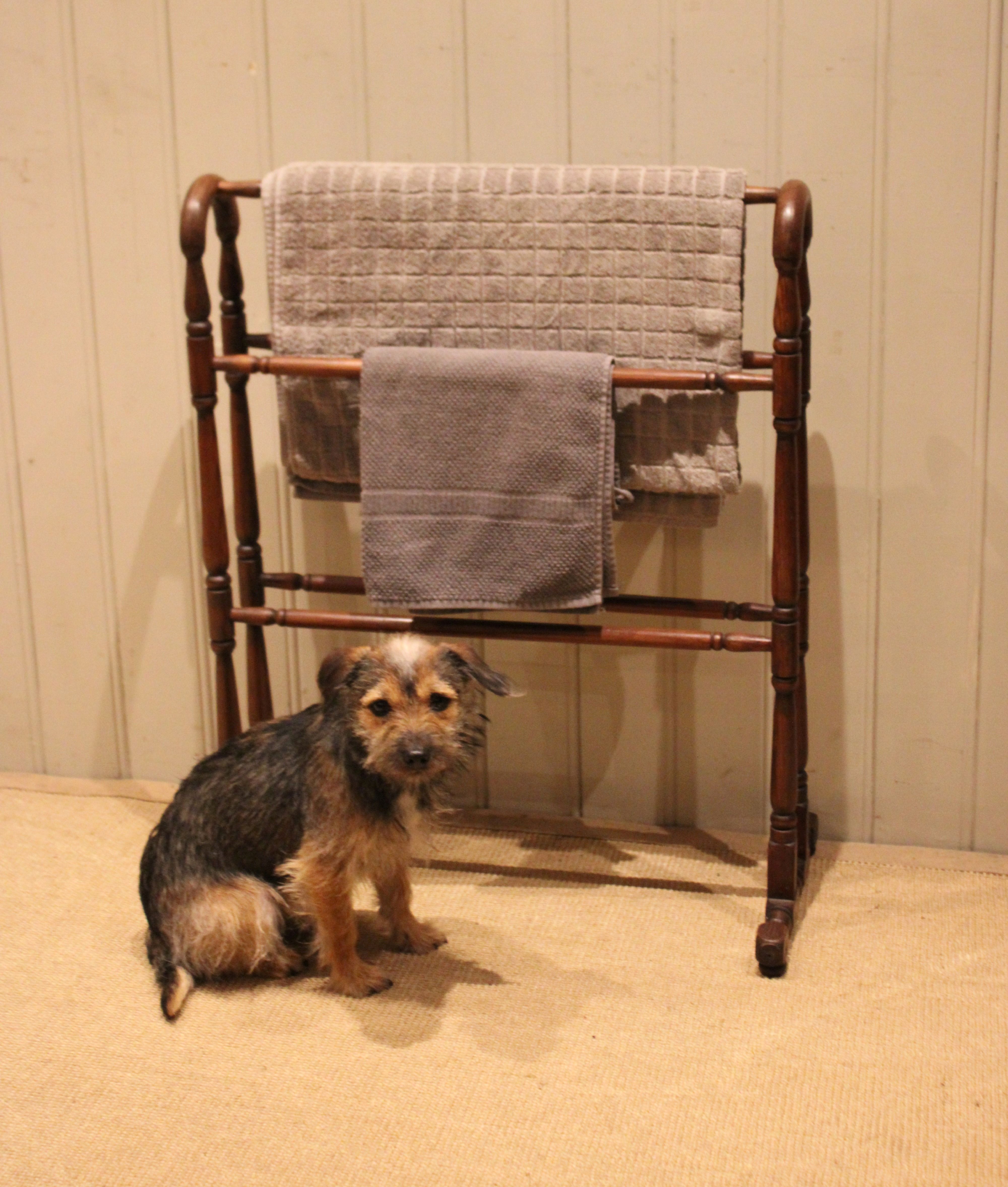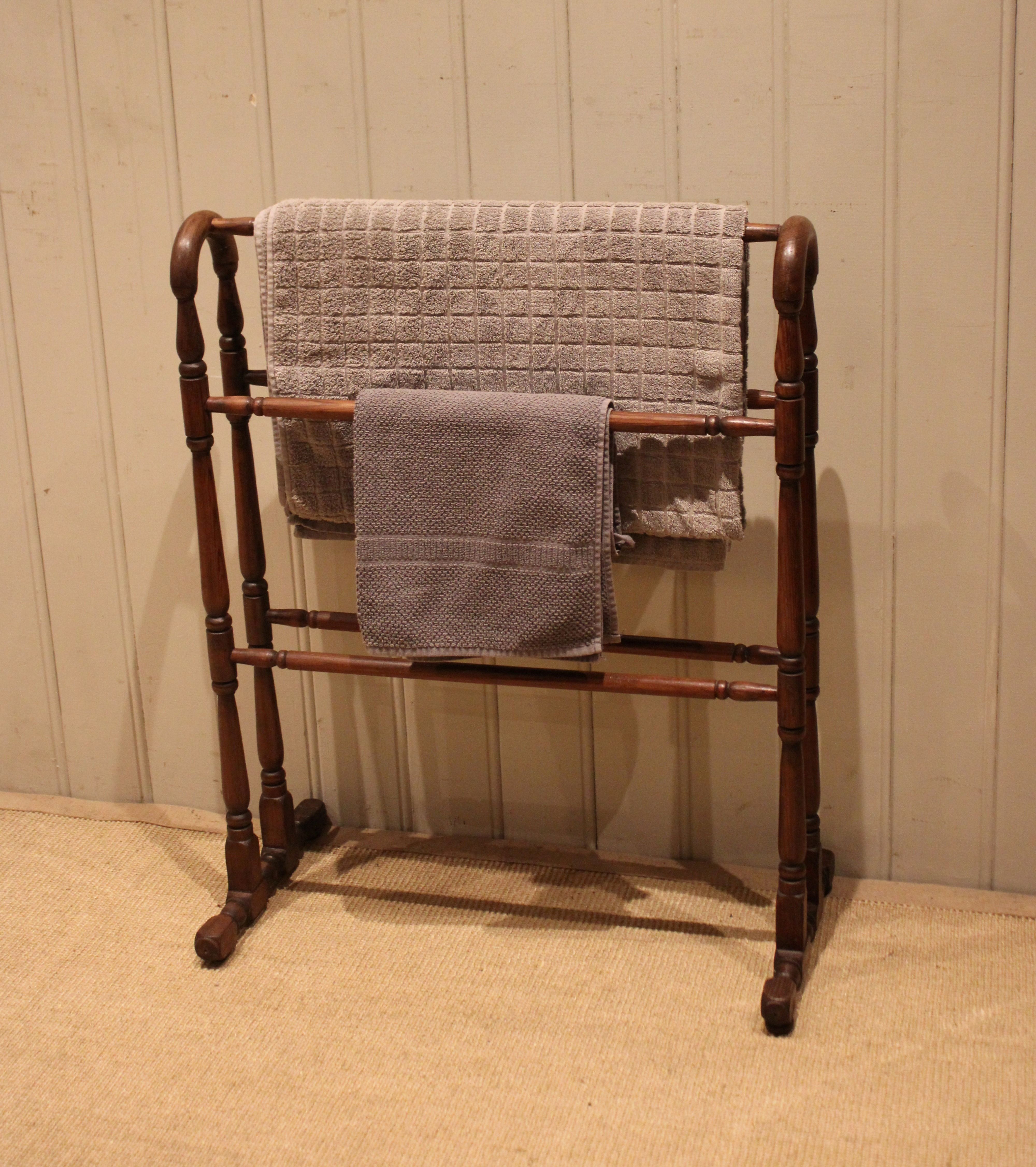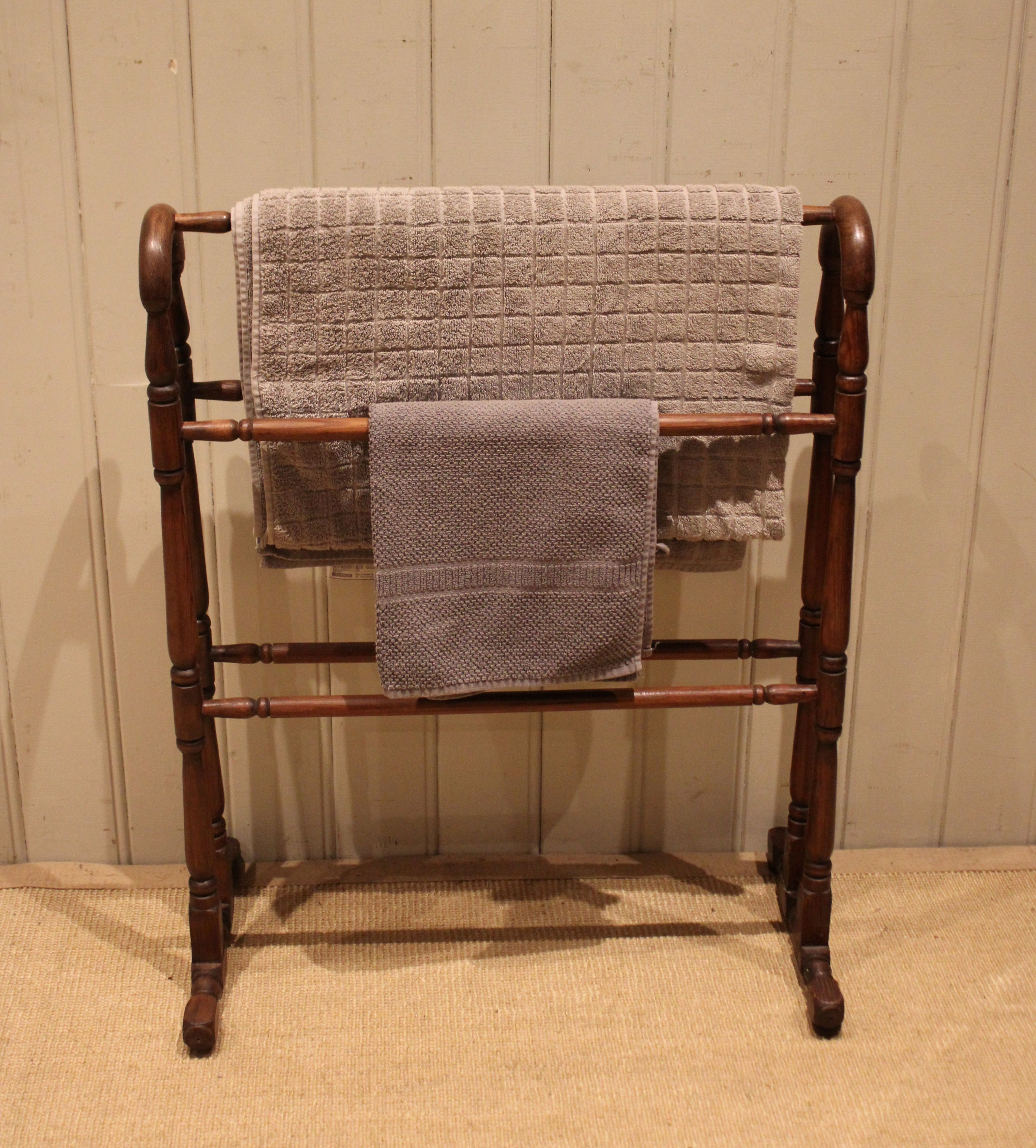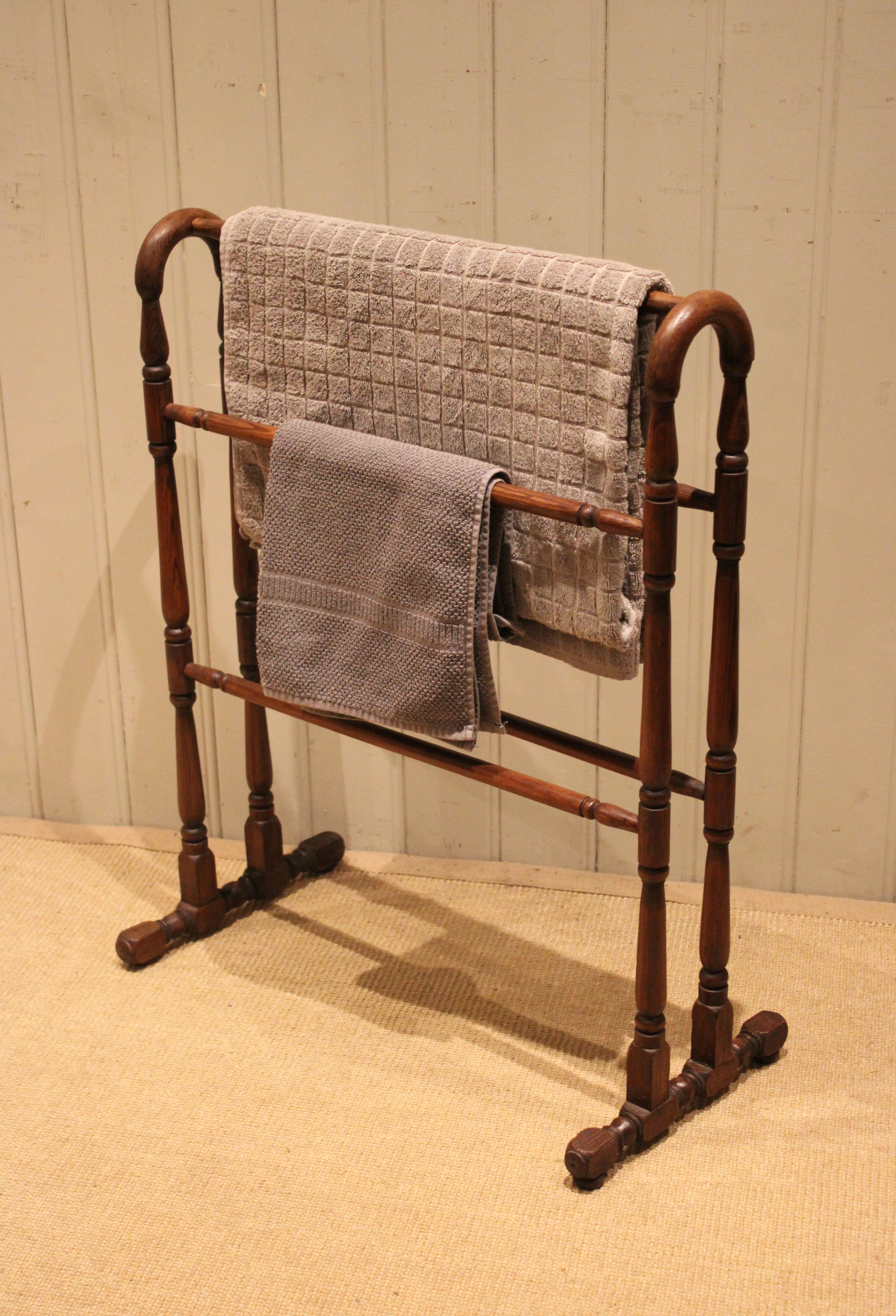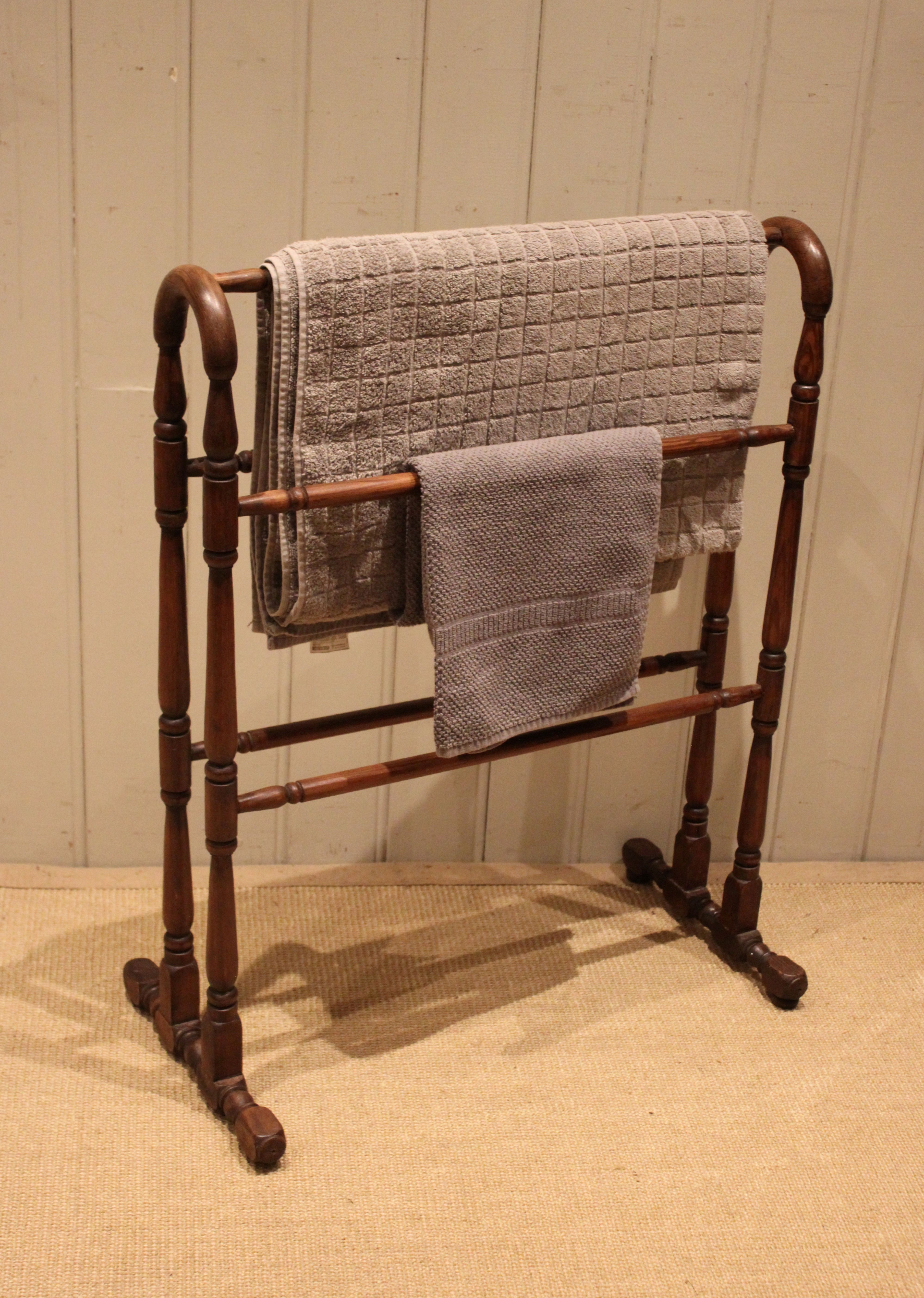 Late 19th Century pitch pine towel rail having five hanging rails with carved and moulded supports .