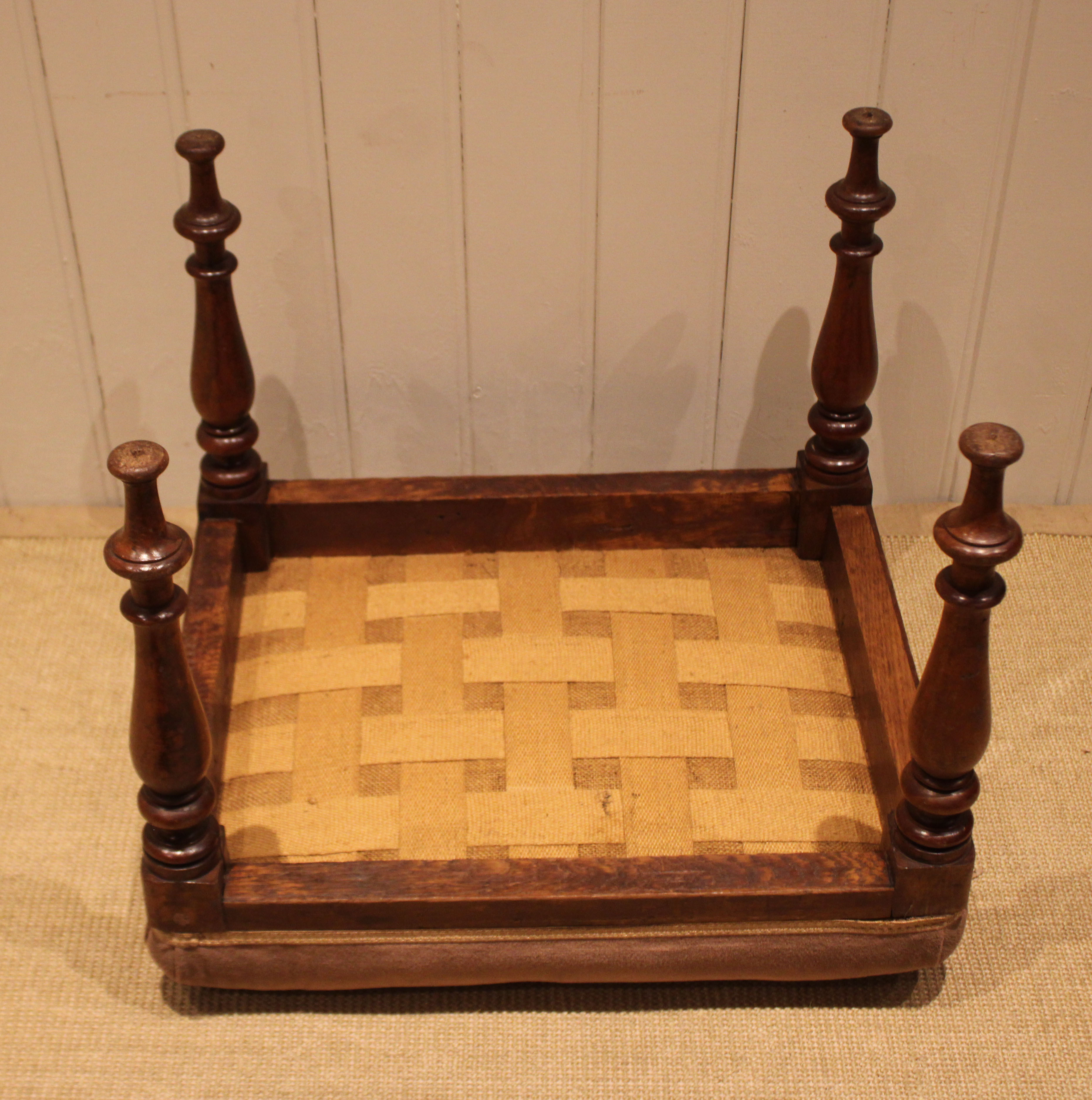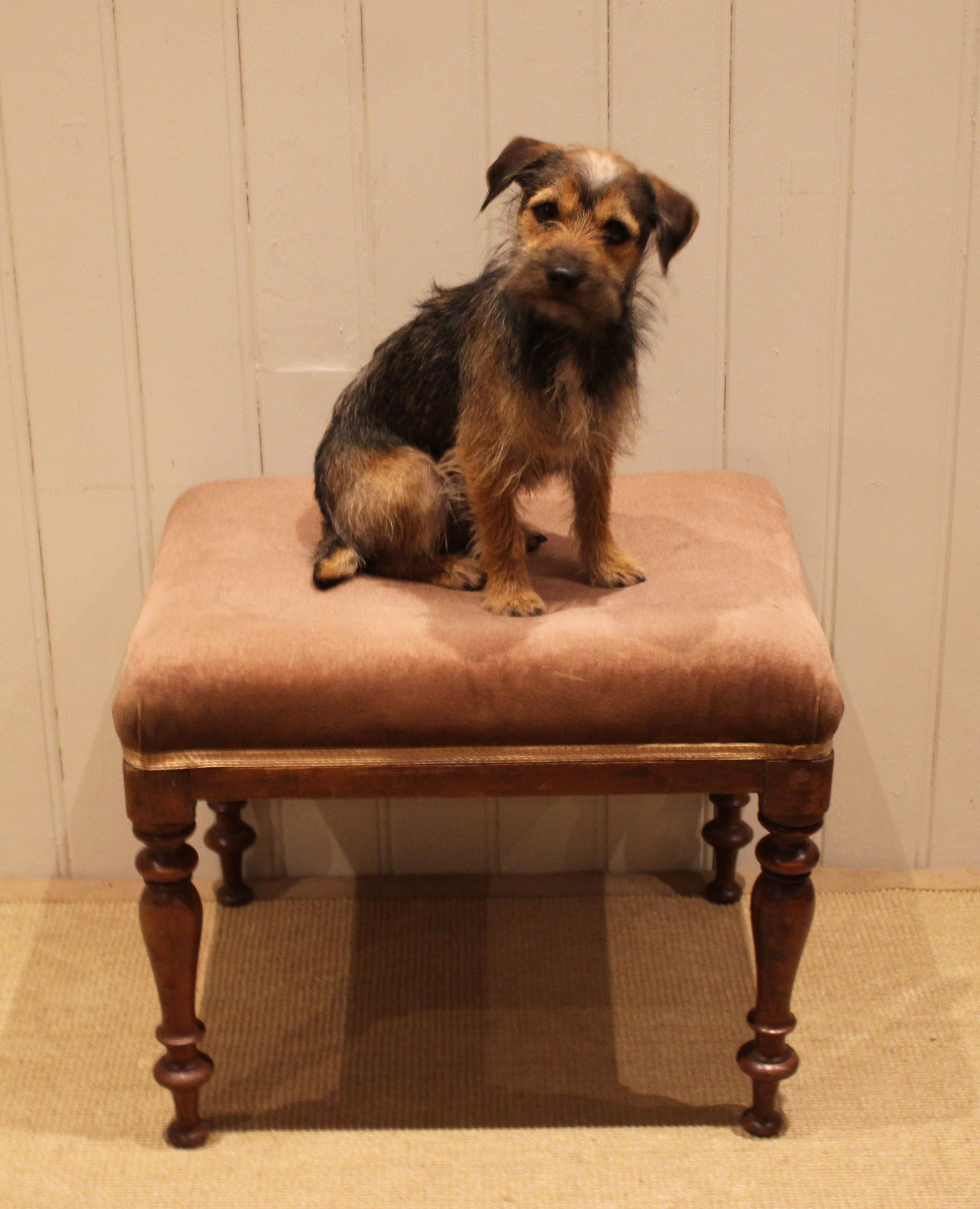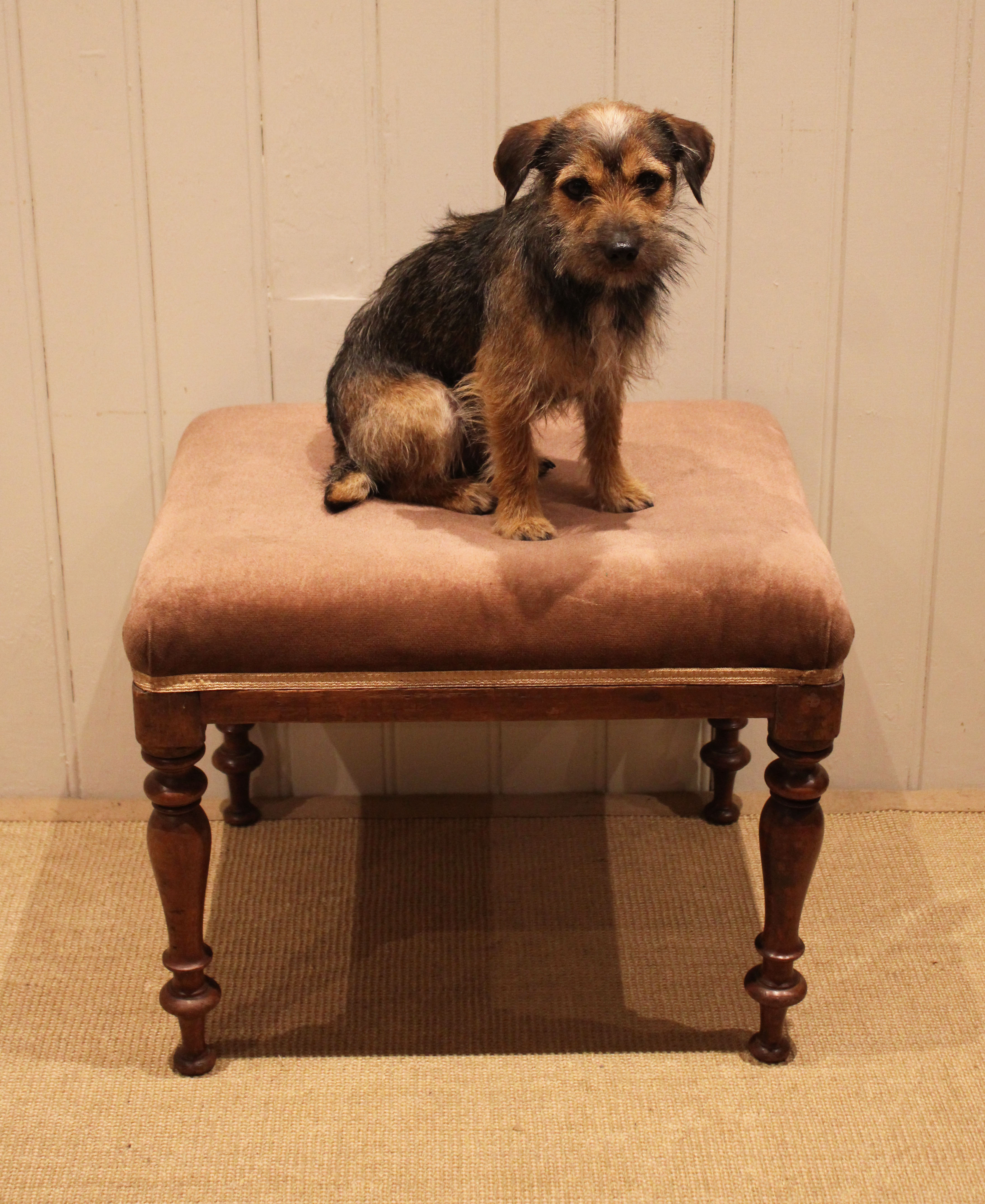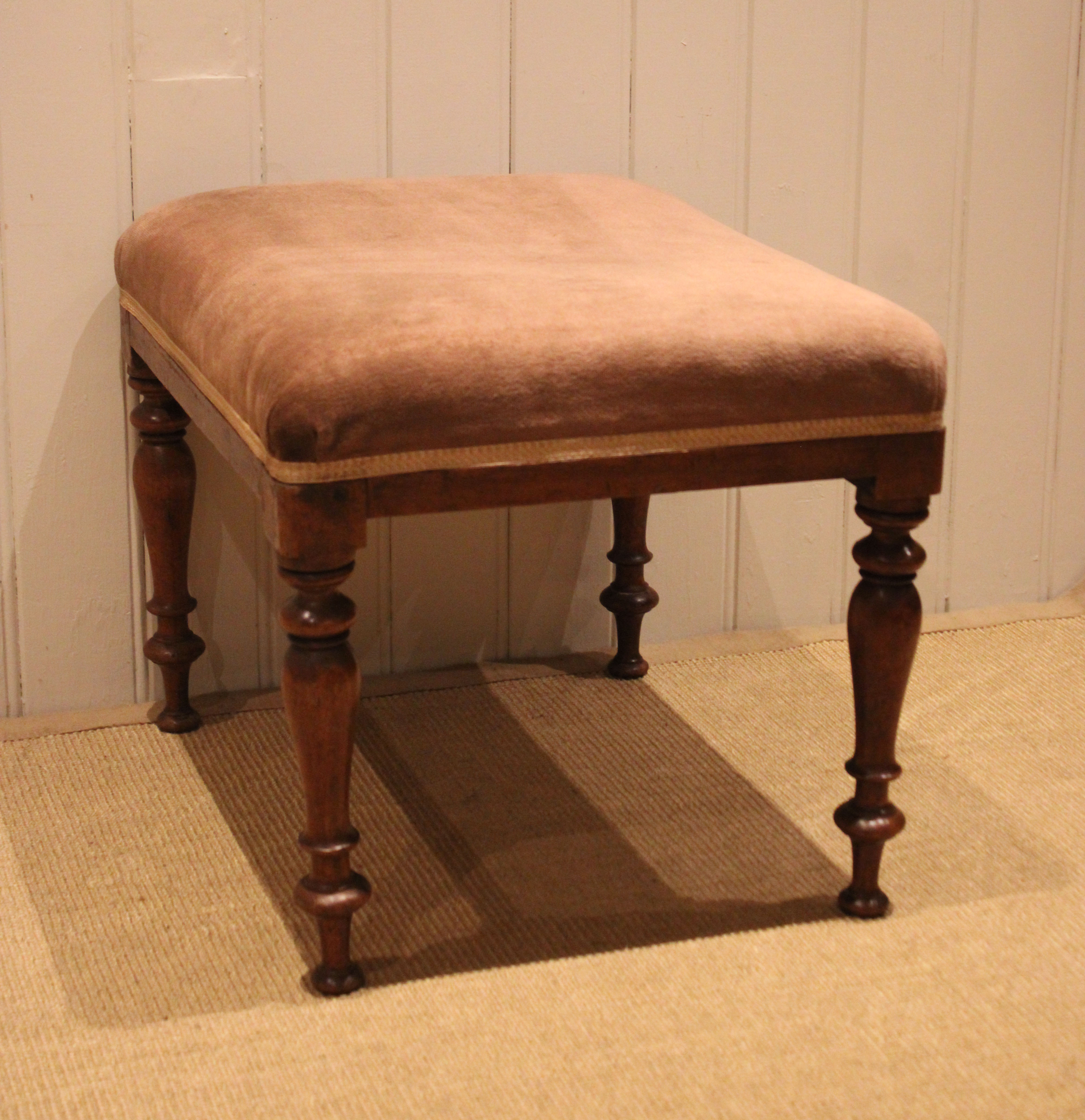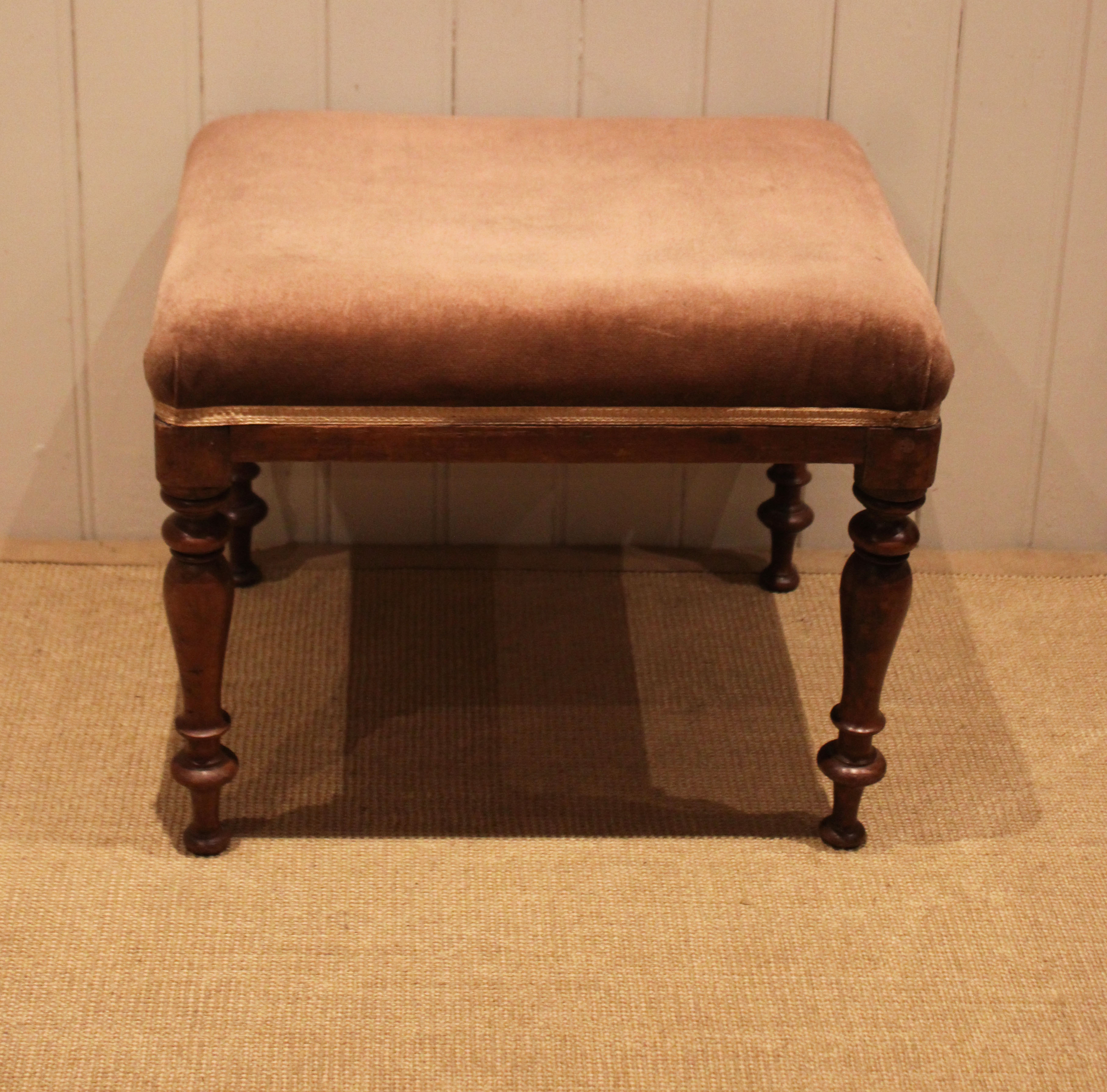 Mahogany upholstered stool raised on turned supports . A great item for a reupholstery project .