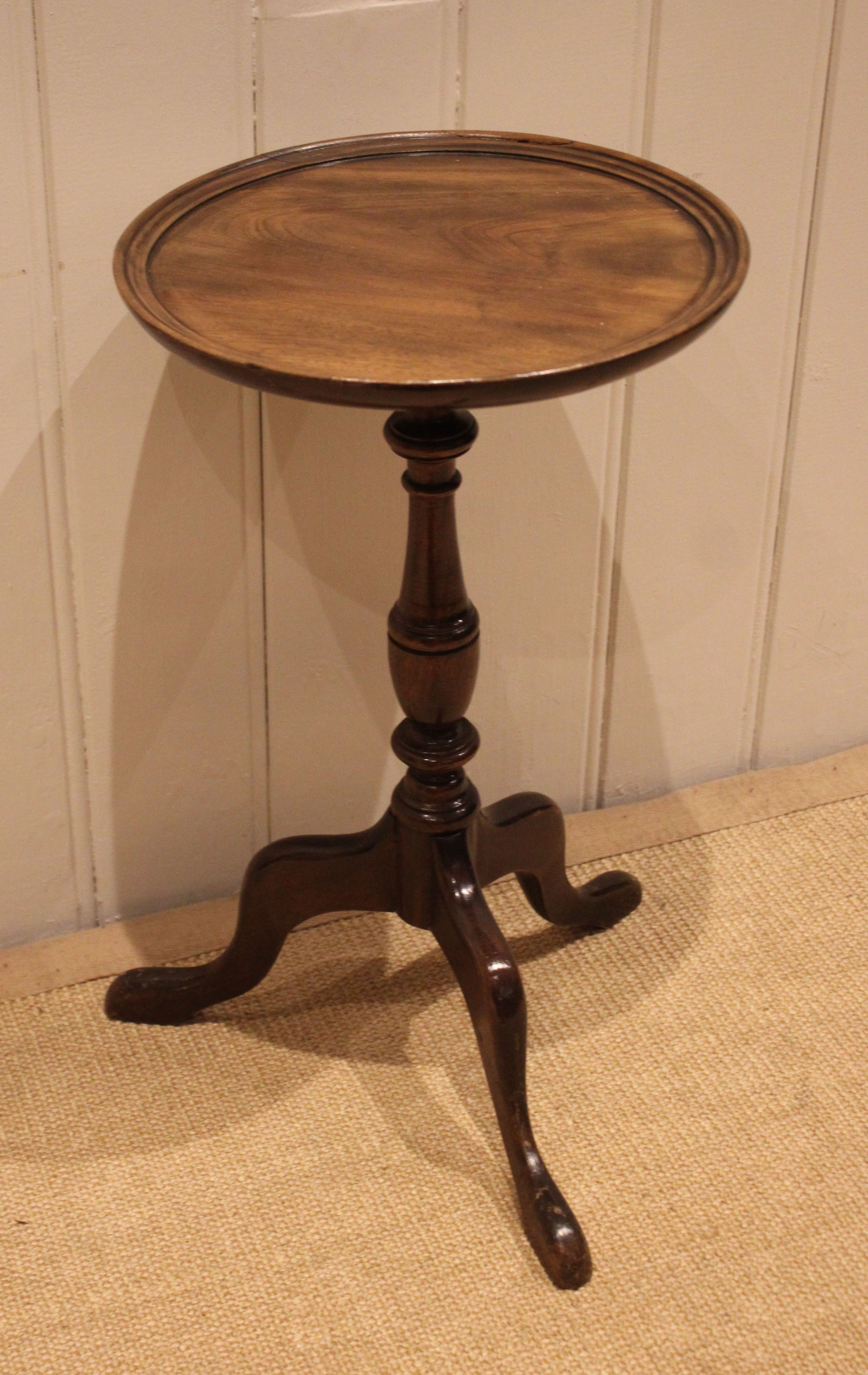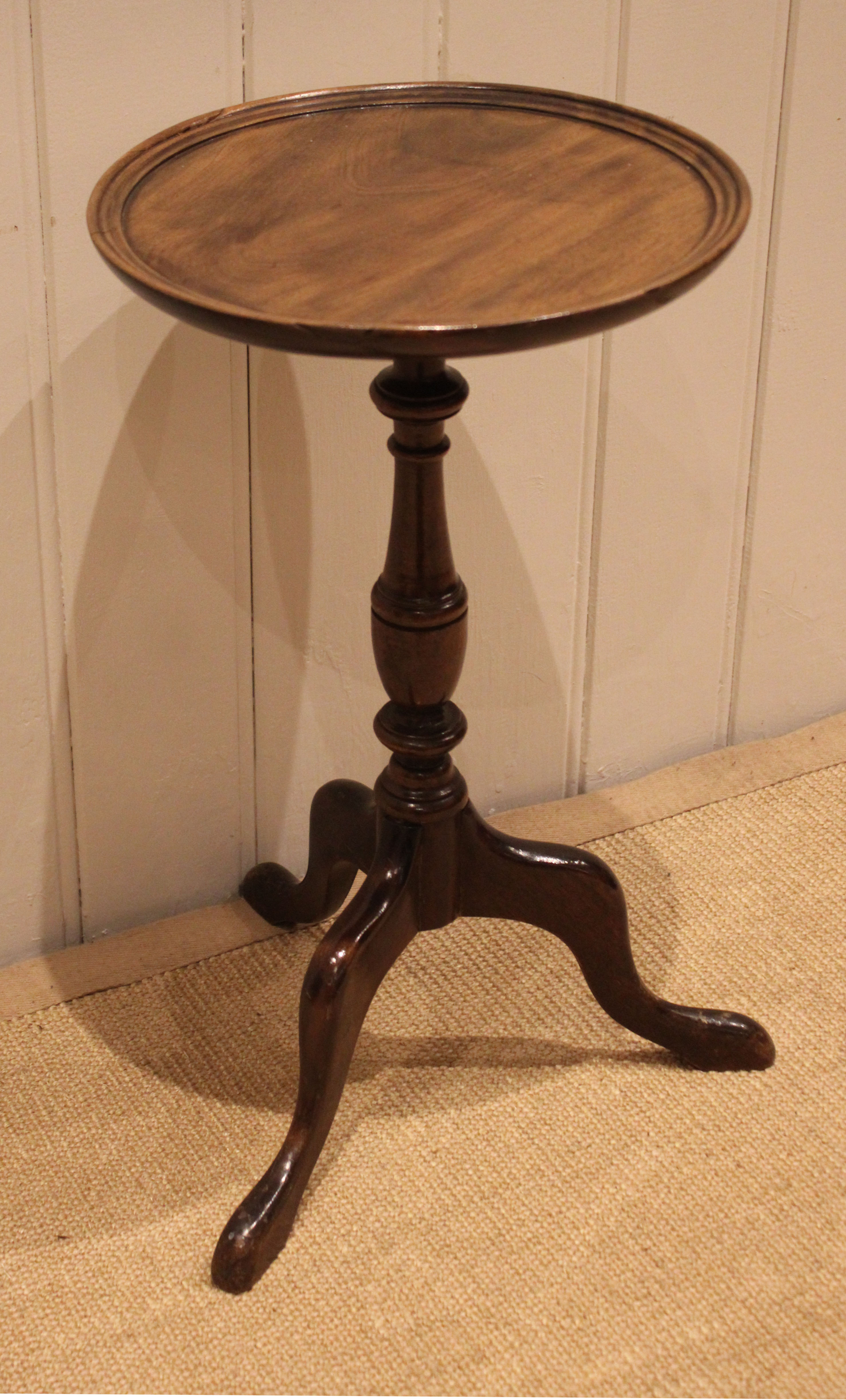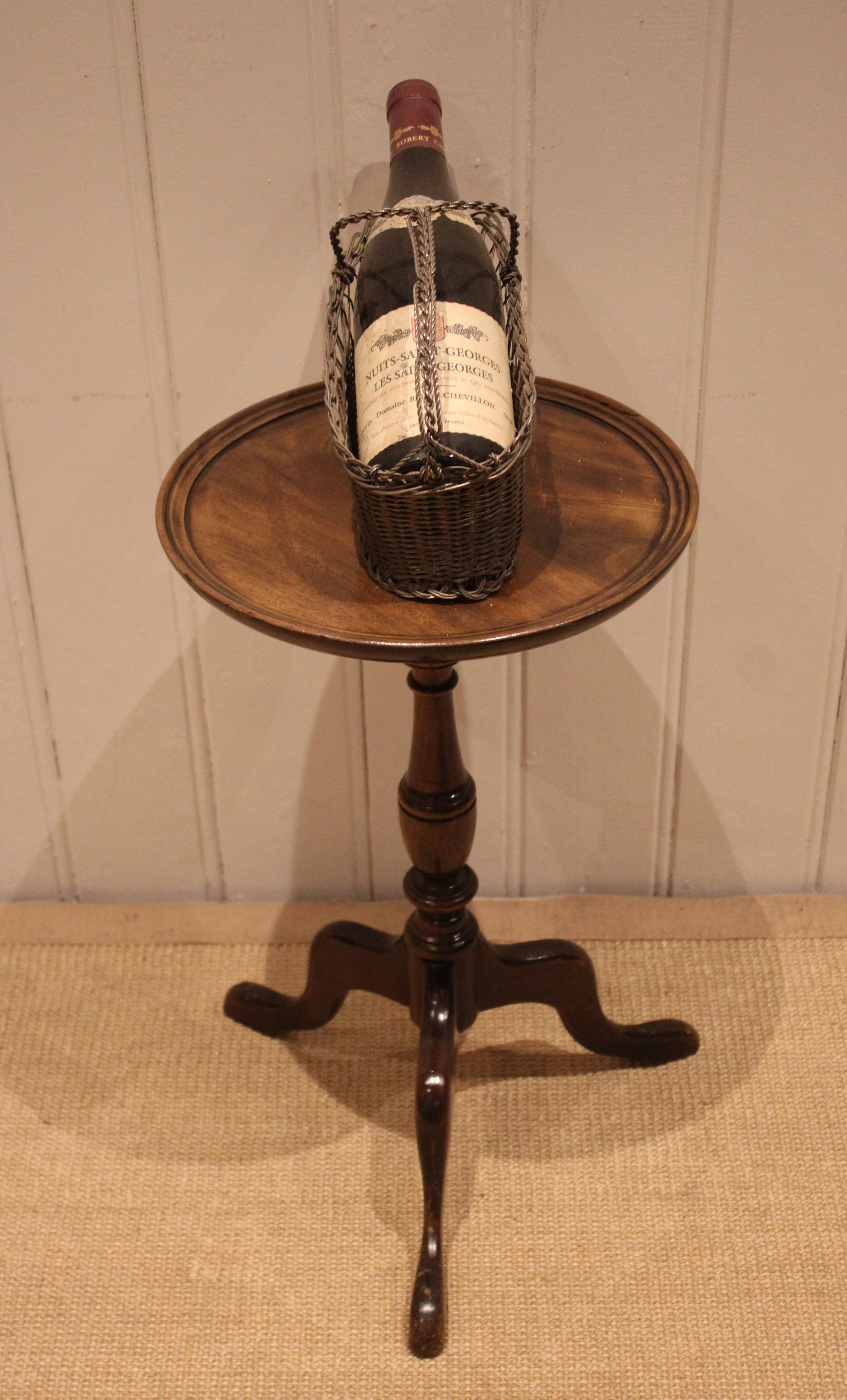 Mahogany wine table raised on a baluster turned twist column and tripod down swept legs.
