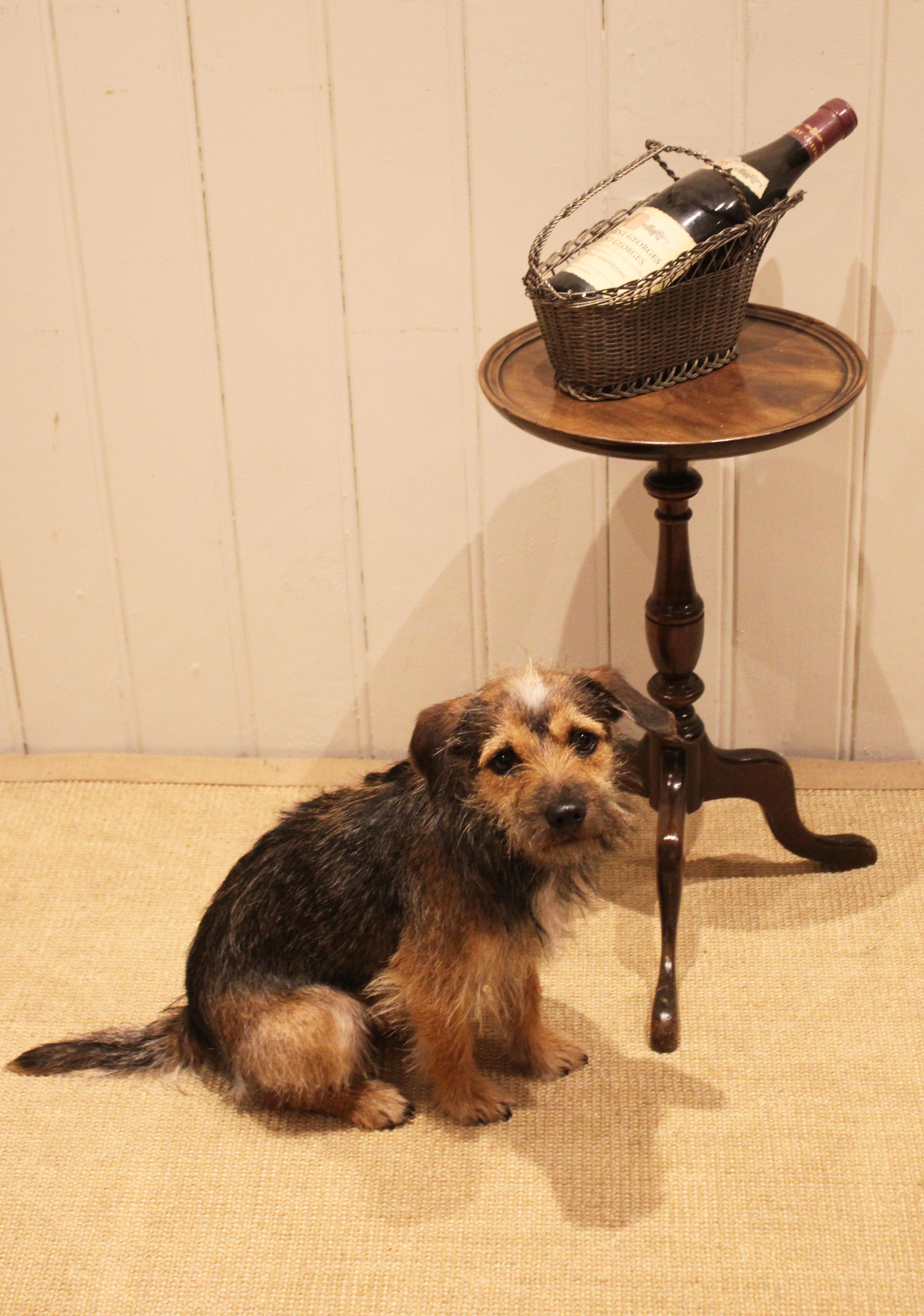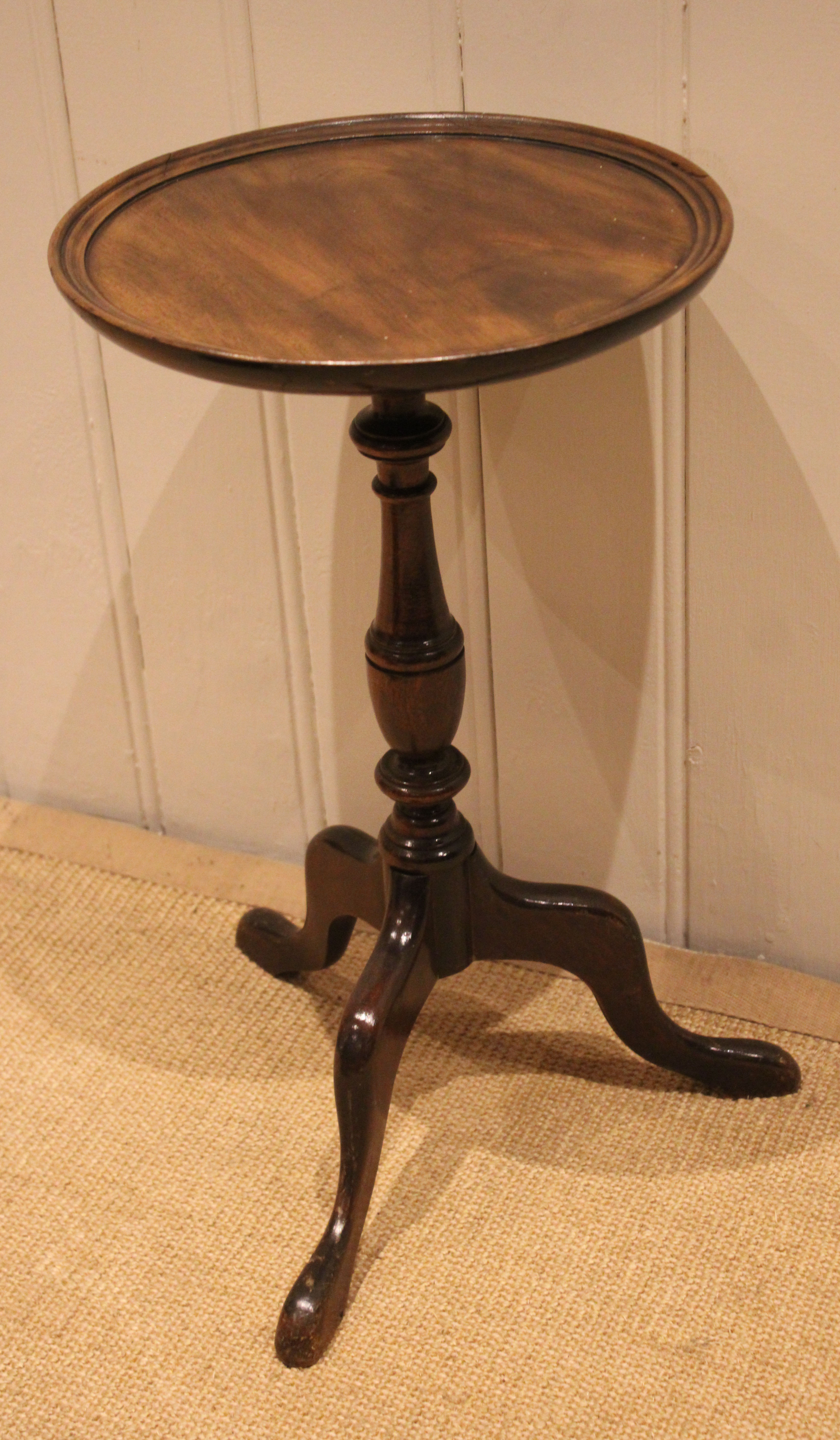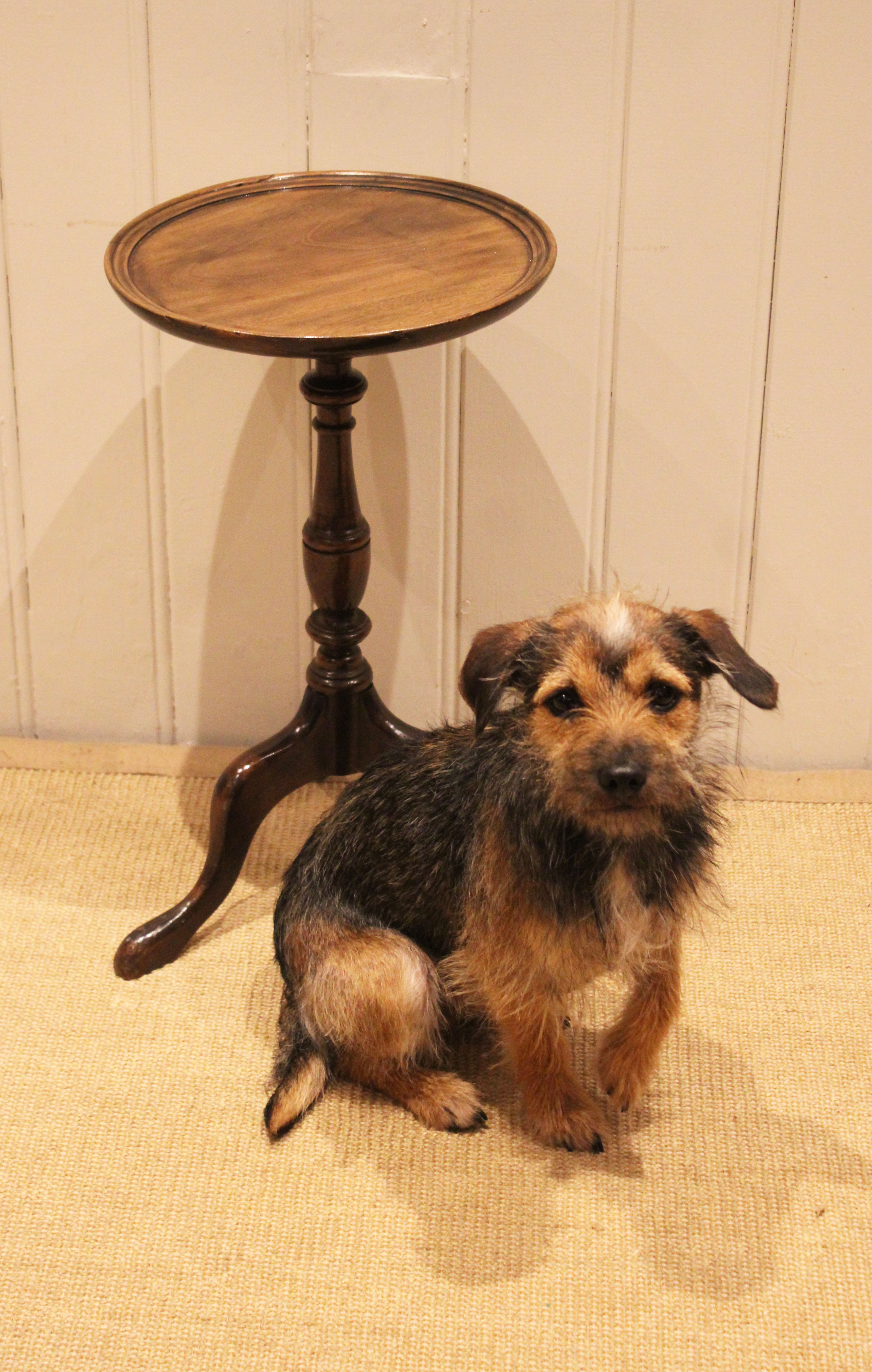 Mahogany wine table raised on a baluster turned twist column and tripod down swept legs.