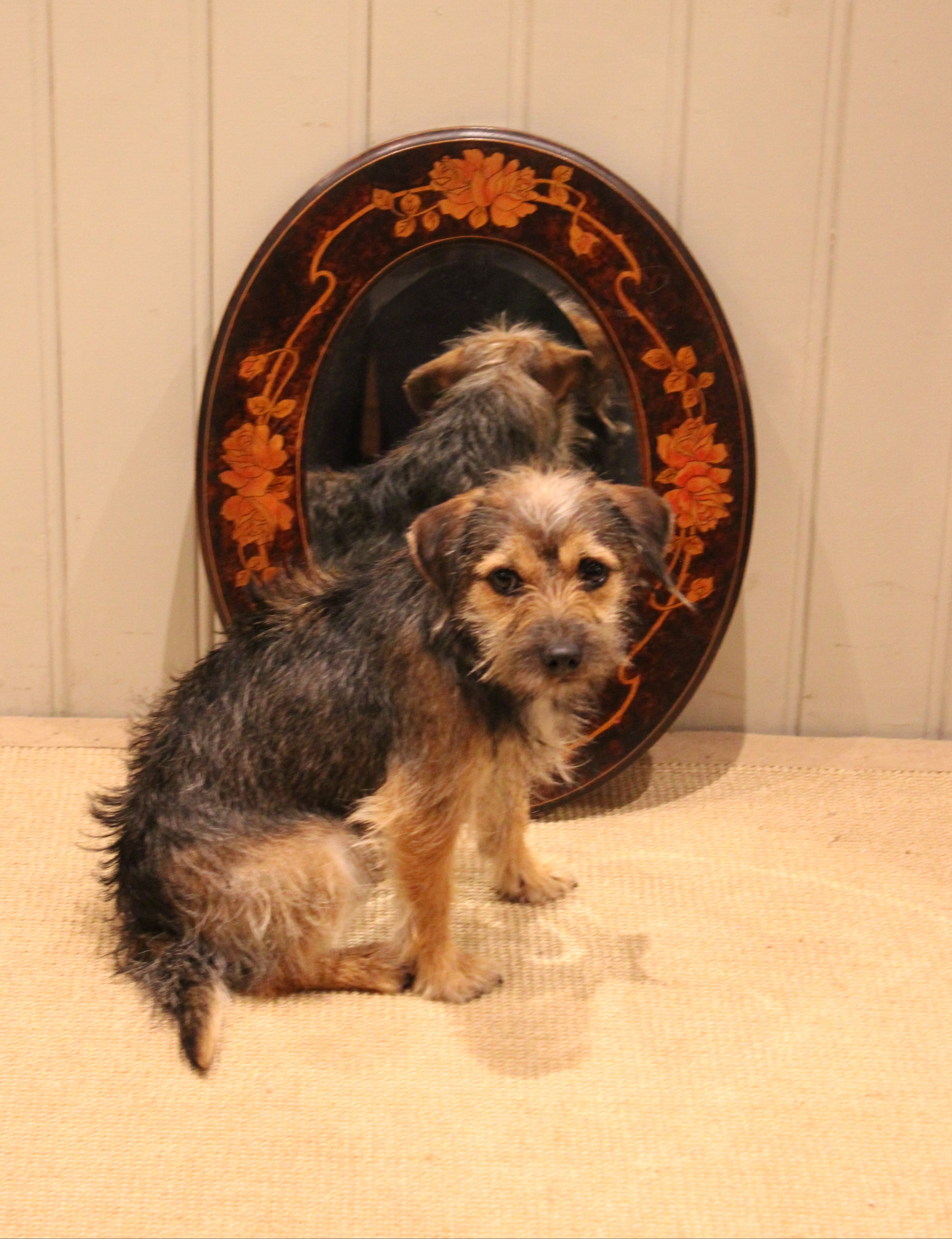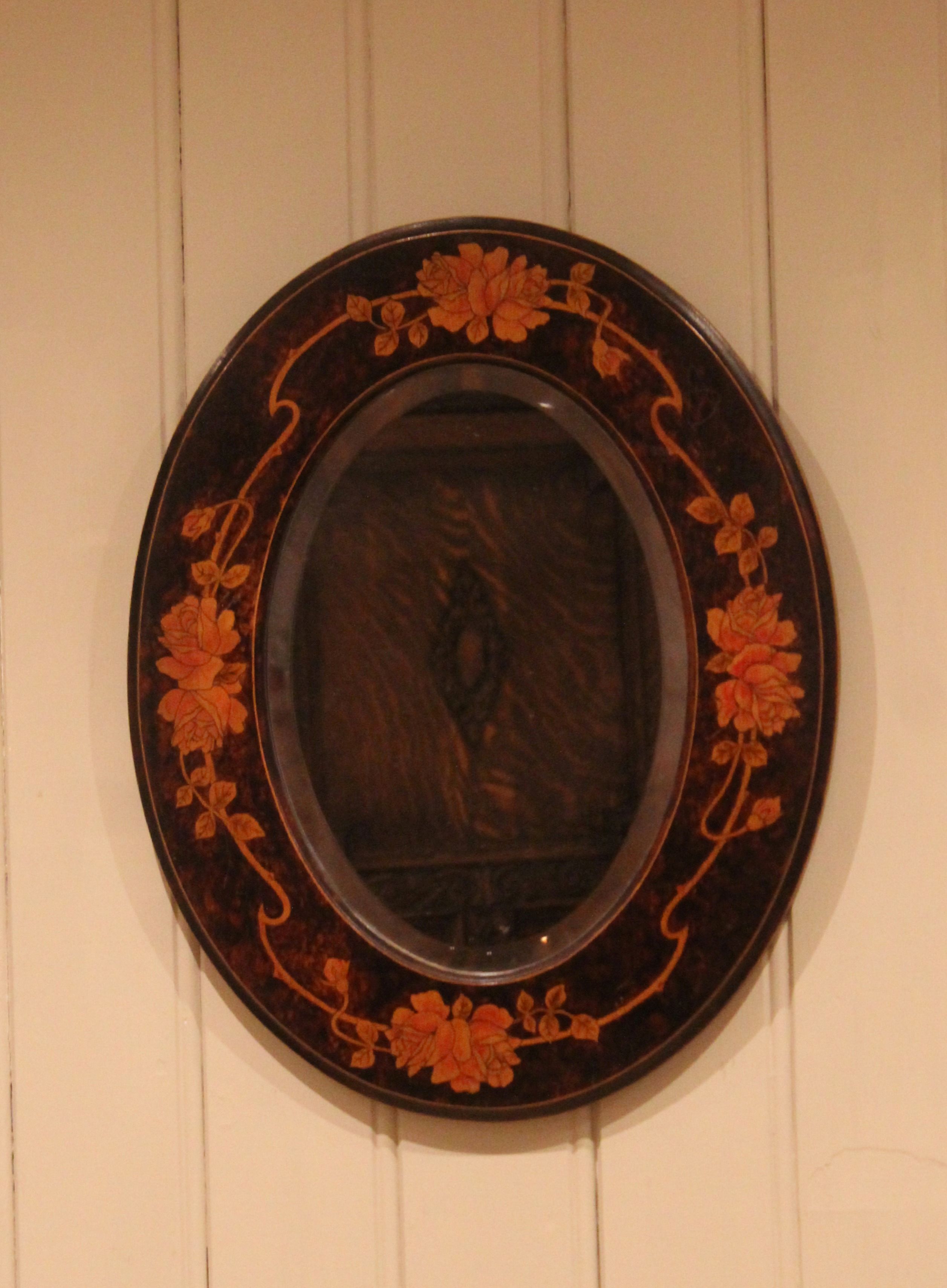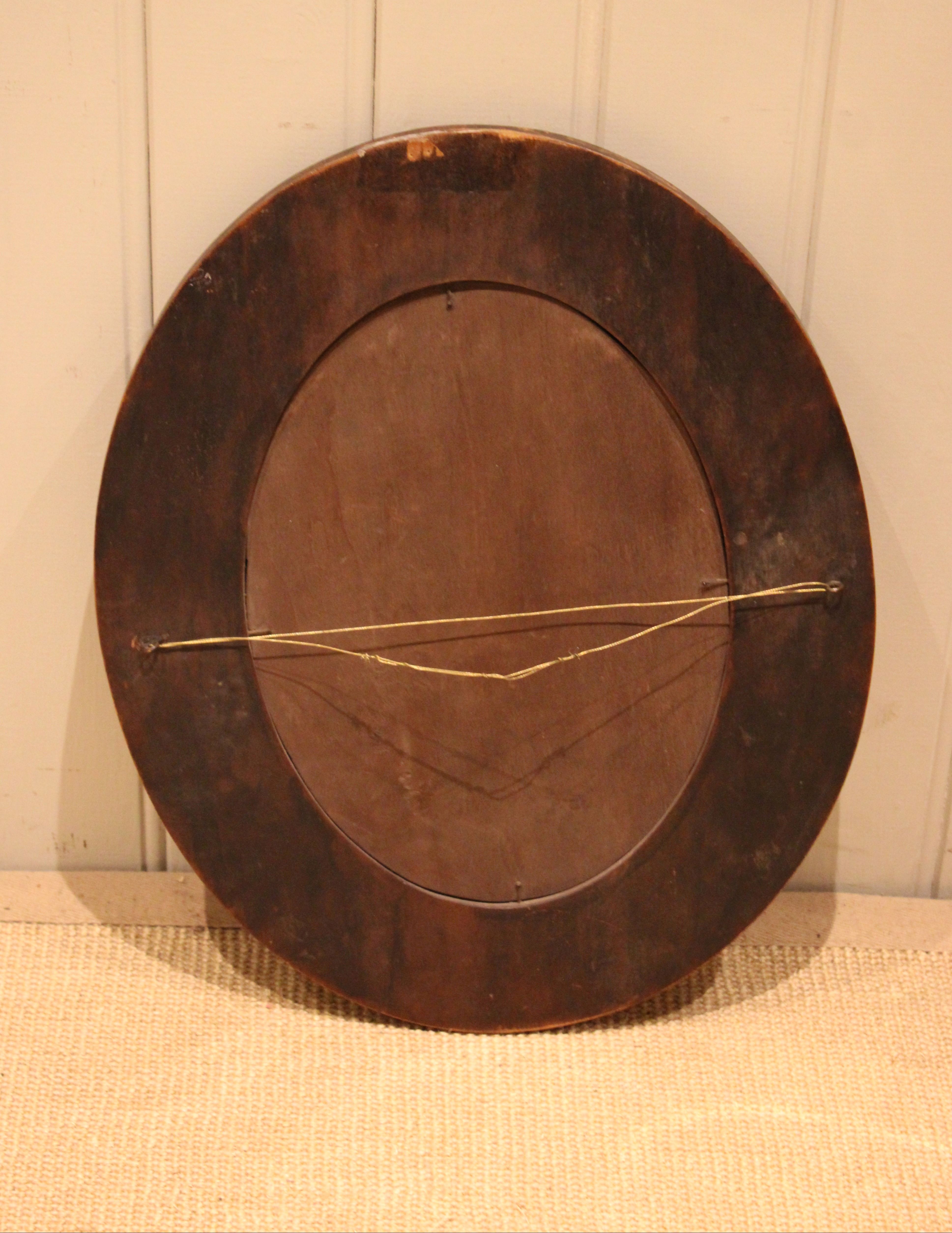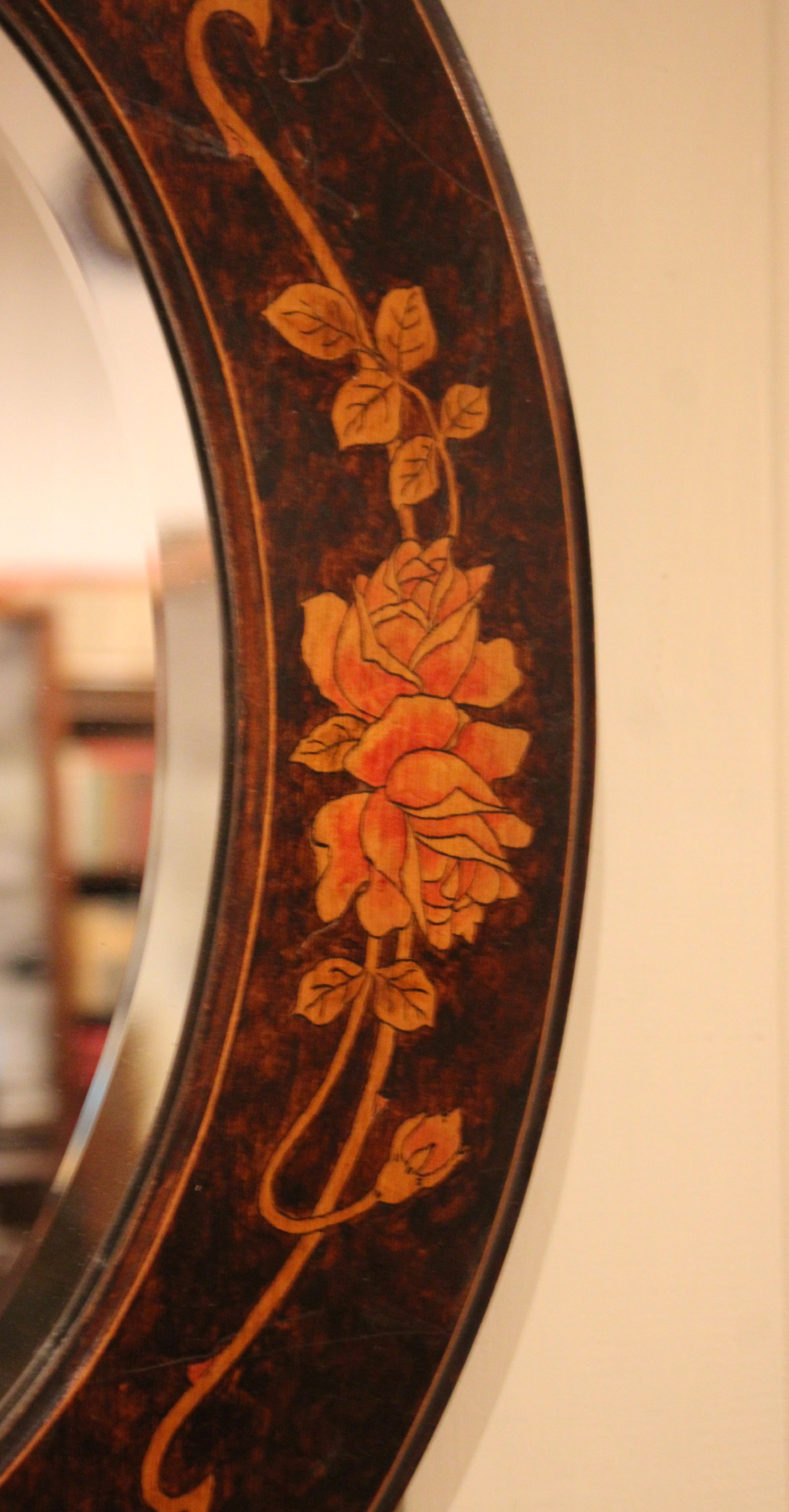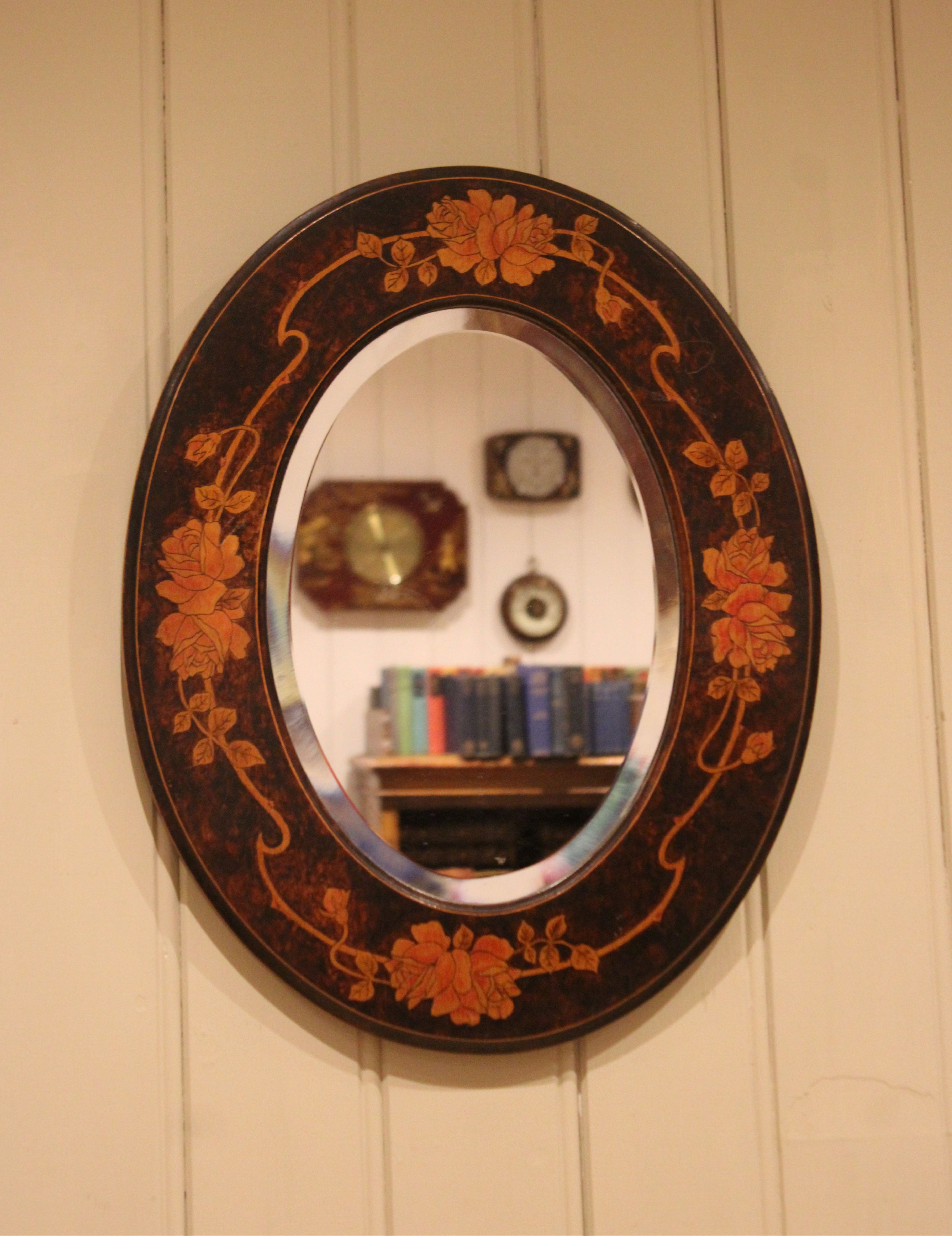 Attractive small oval beech wood wall mirror having floral decoration throughout with an inset bevel edge mirror.