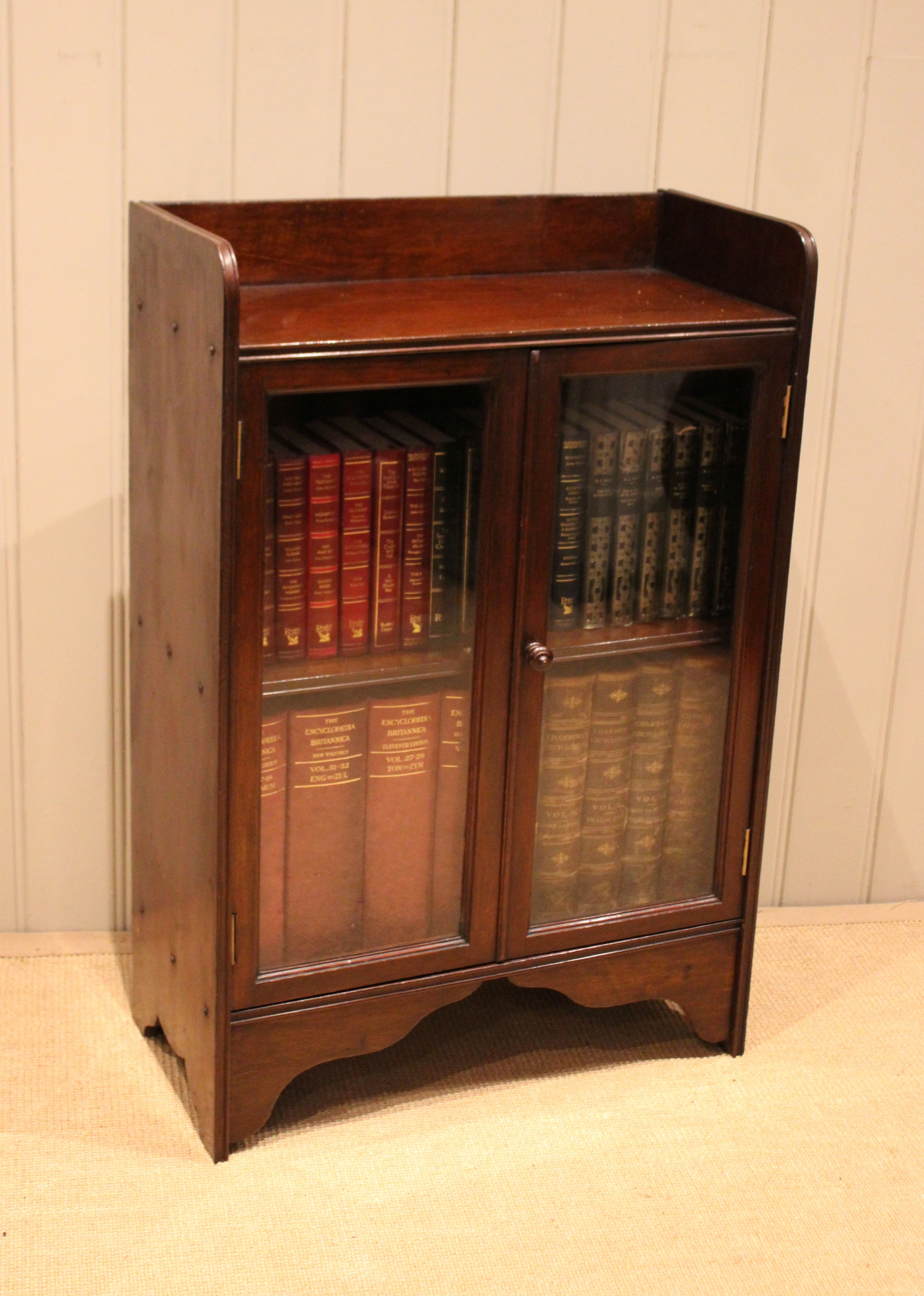 Solid oak cabinet bookcase having three graduated fixed shelves above a small two door cabinet to the base , having an internal shelf , raised on side brackets.