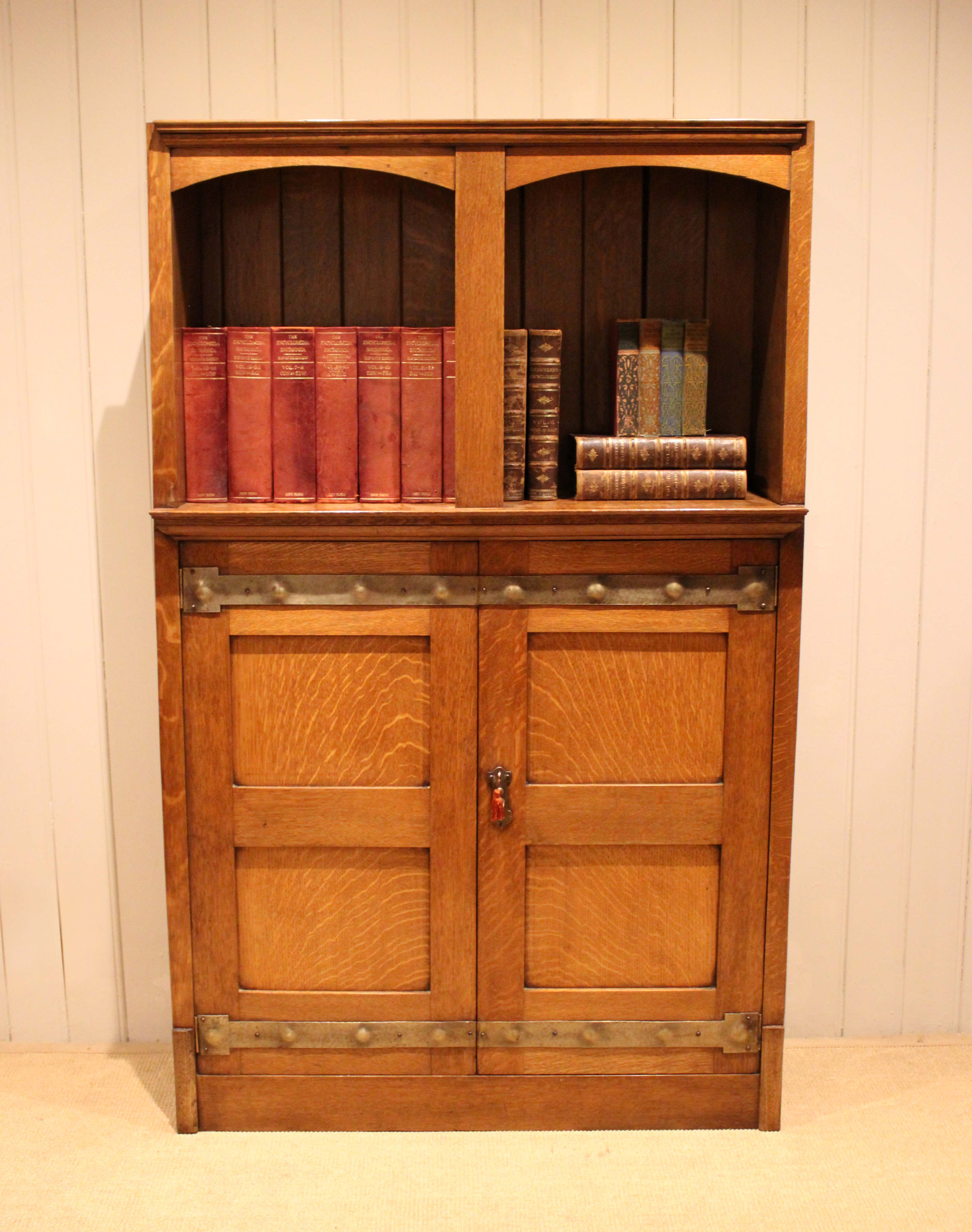 Substantial Golden Oak Arts & Crafts Cabinet