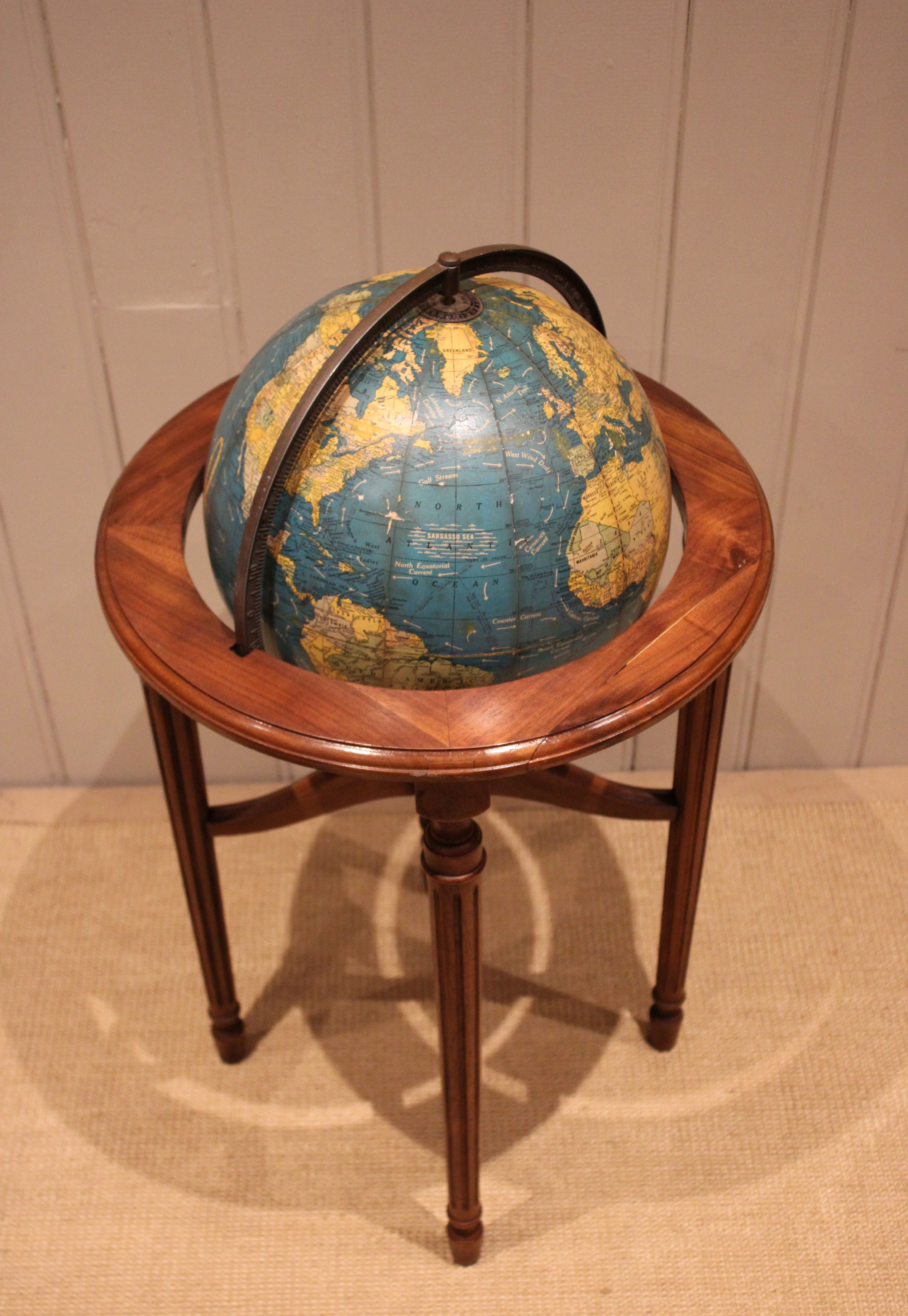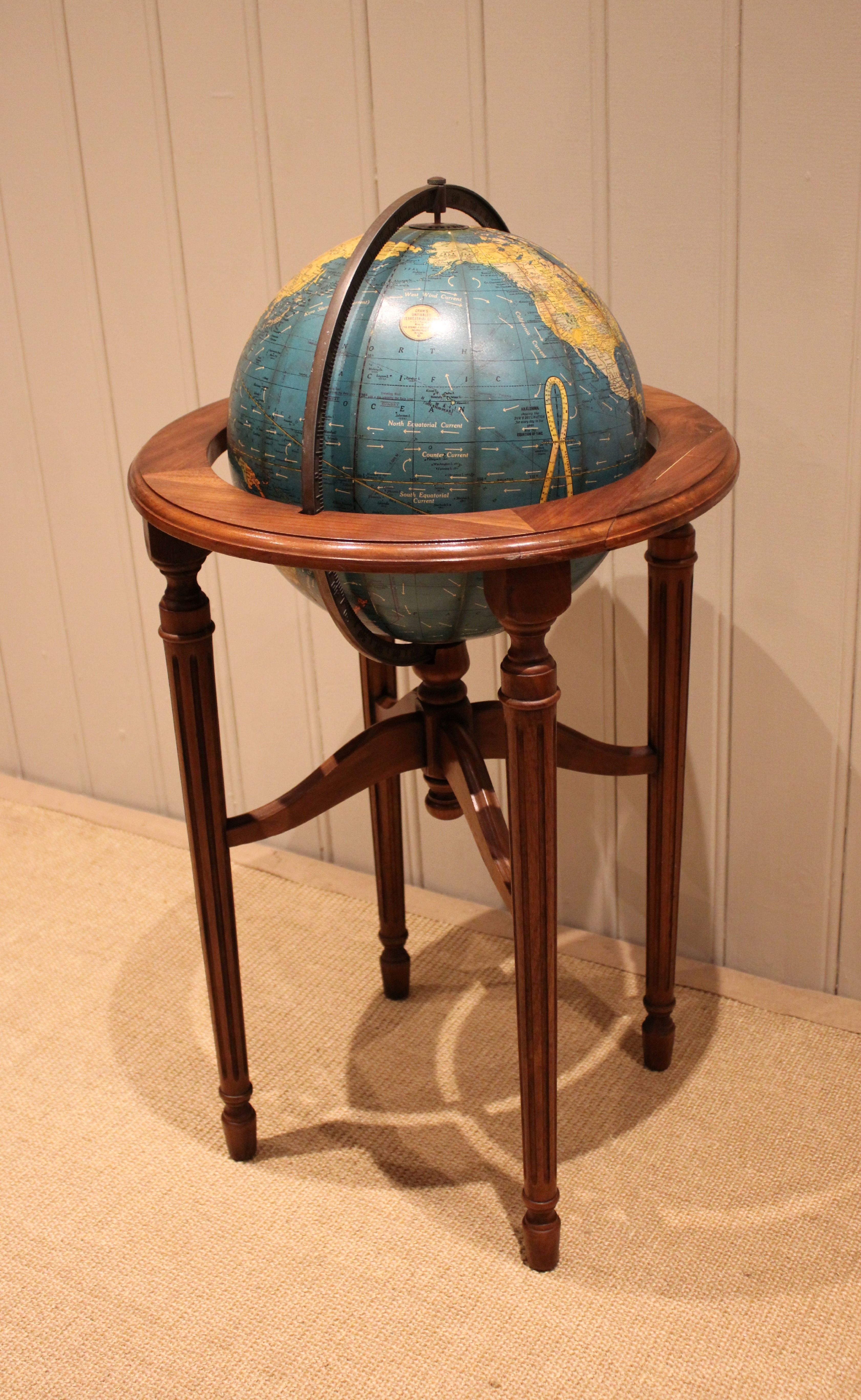 12" Crams Terrestrial Globe On A Walnut Stand