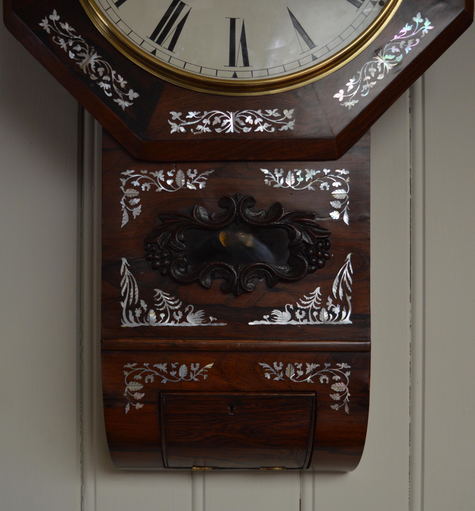 Victorian Rosewood and Mother of Pearl Drop Dial Wall Clock