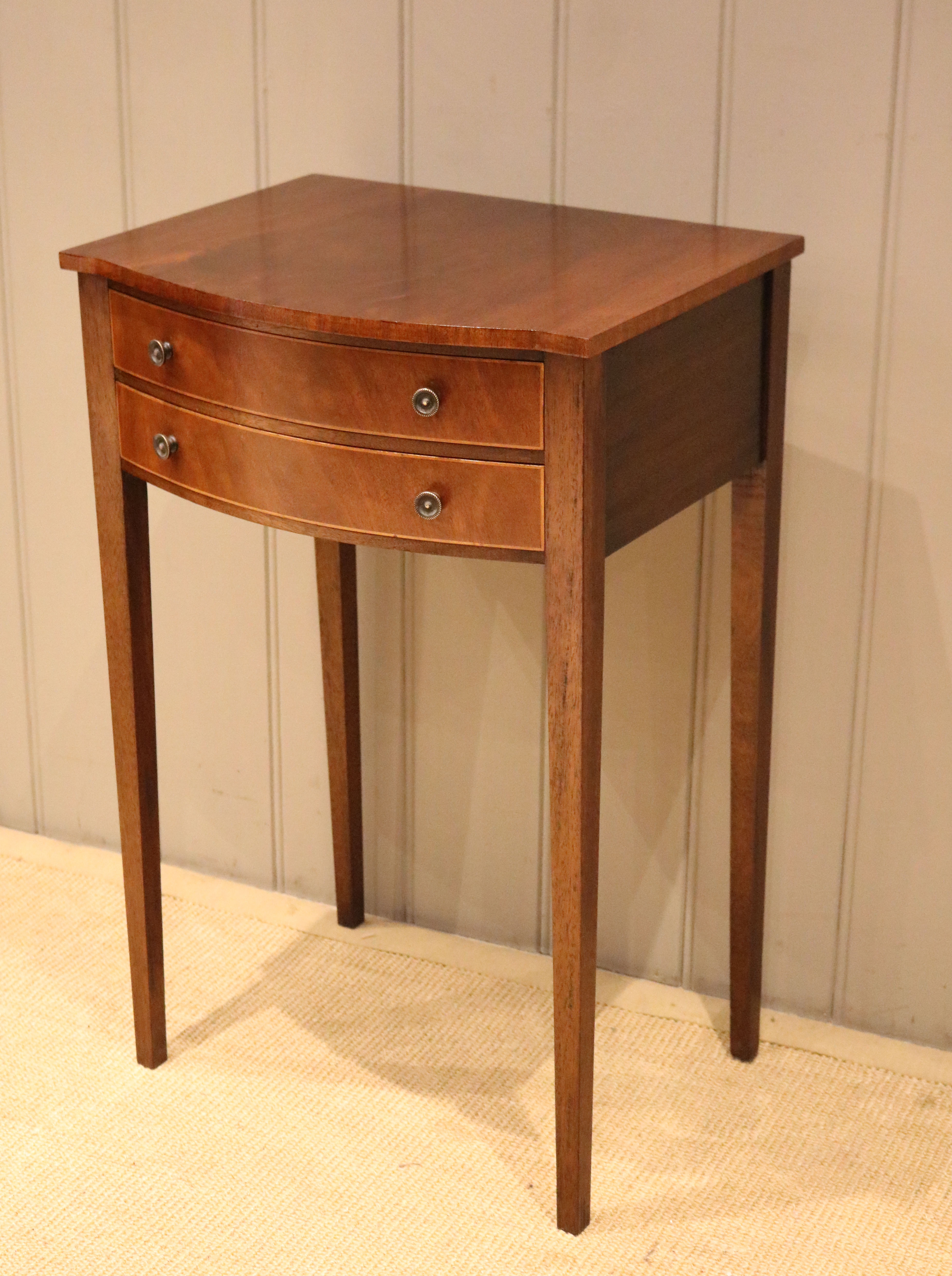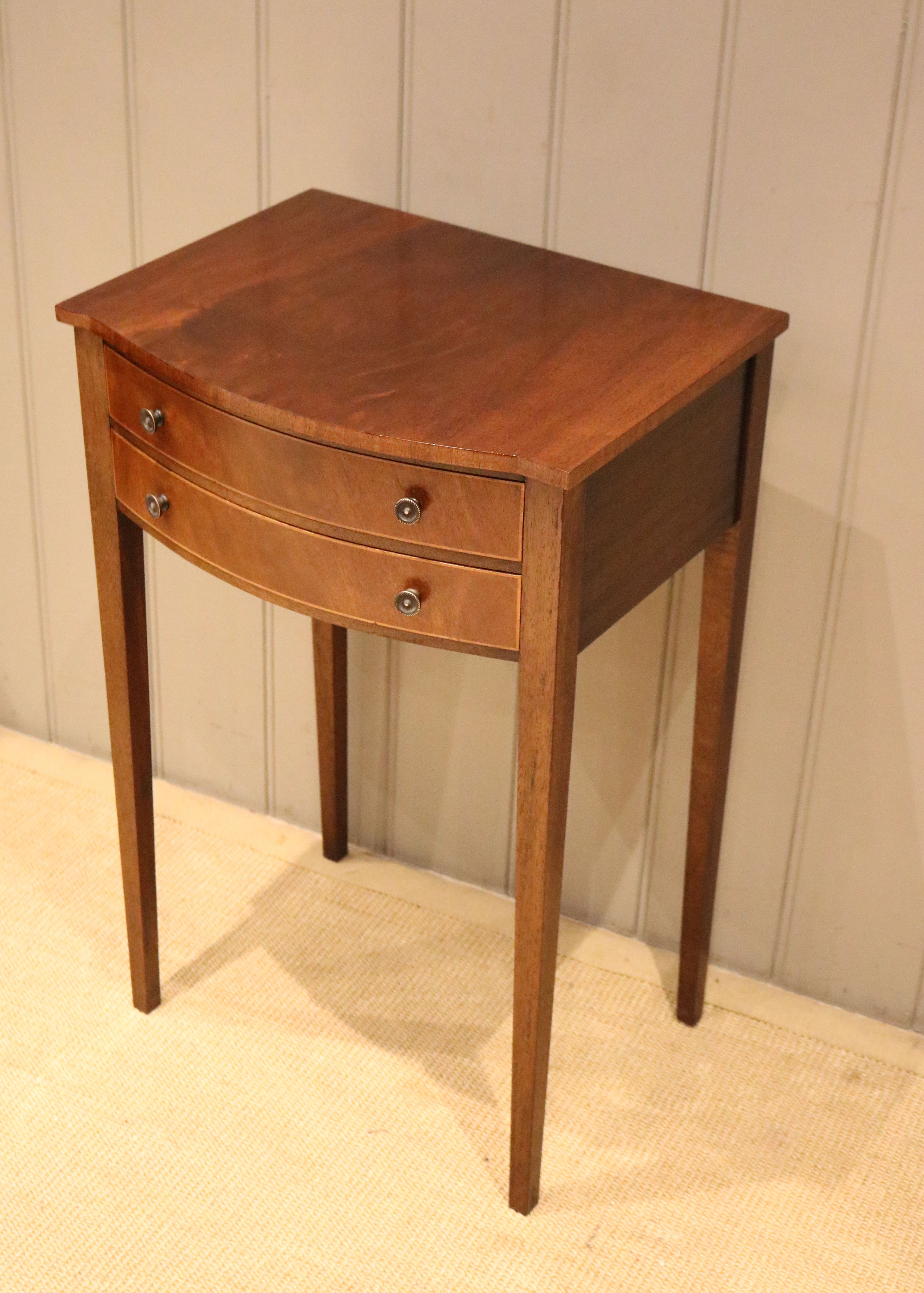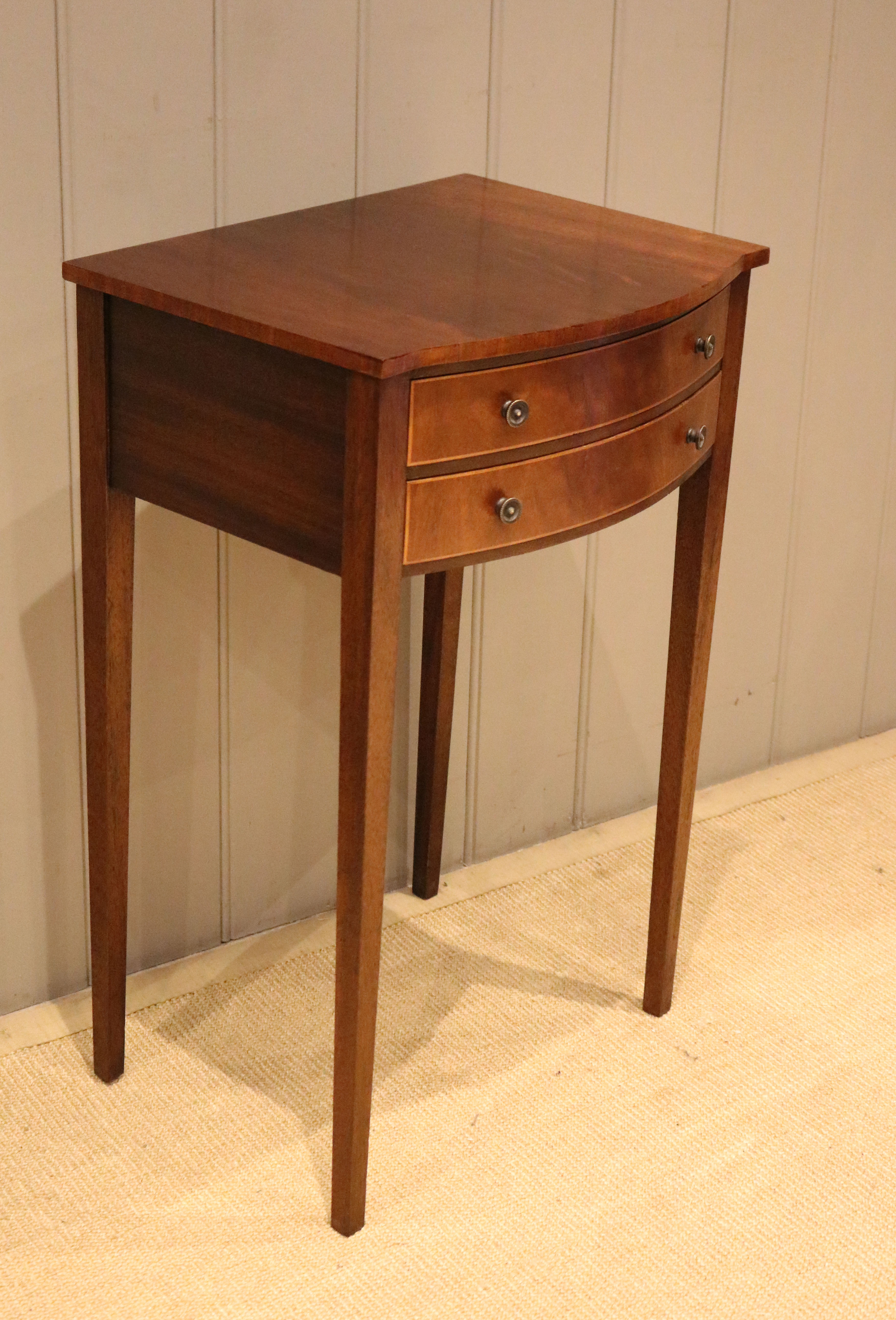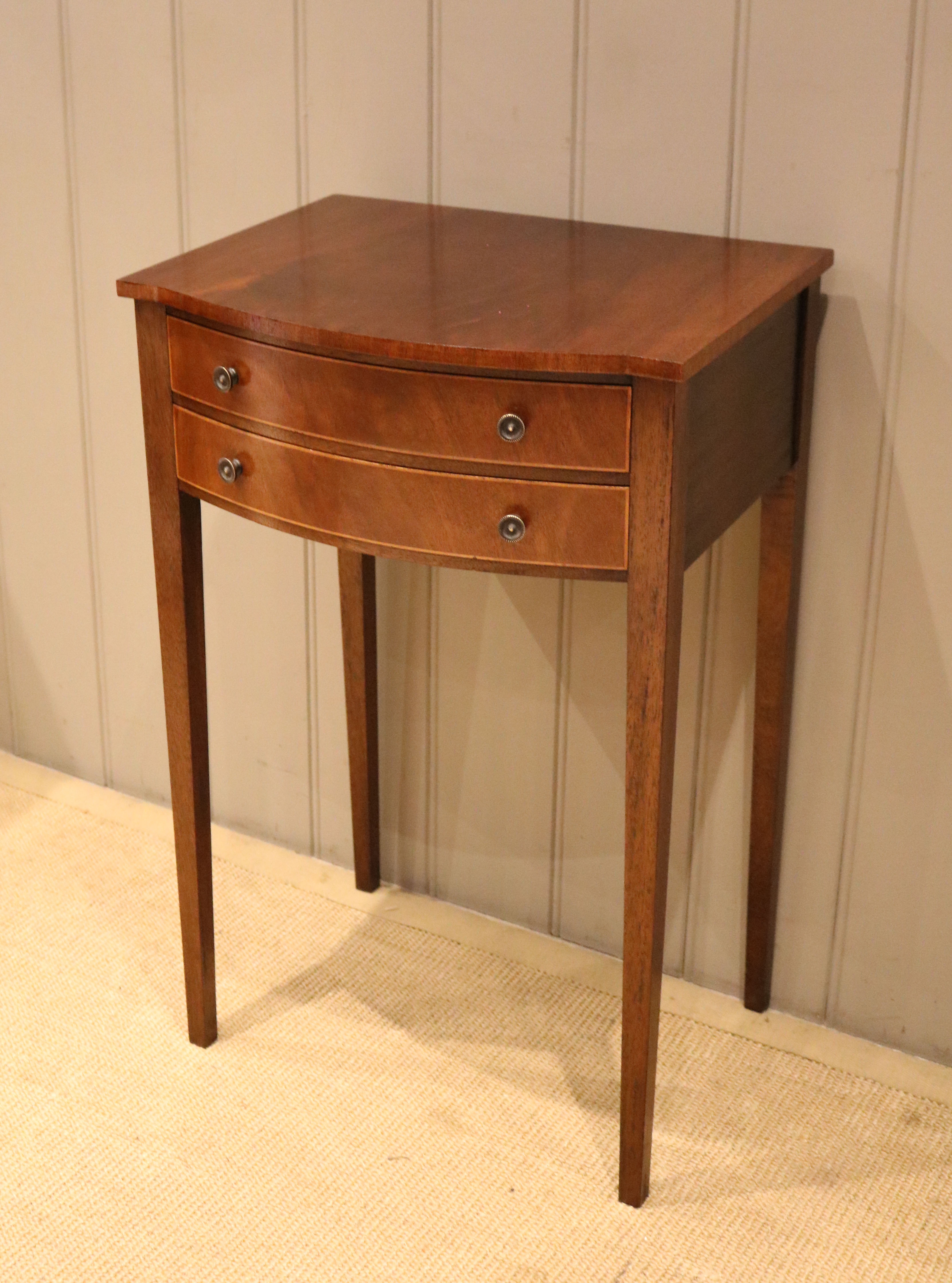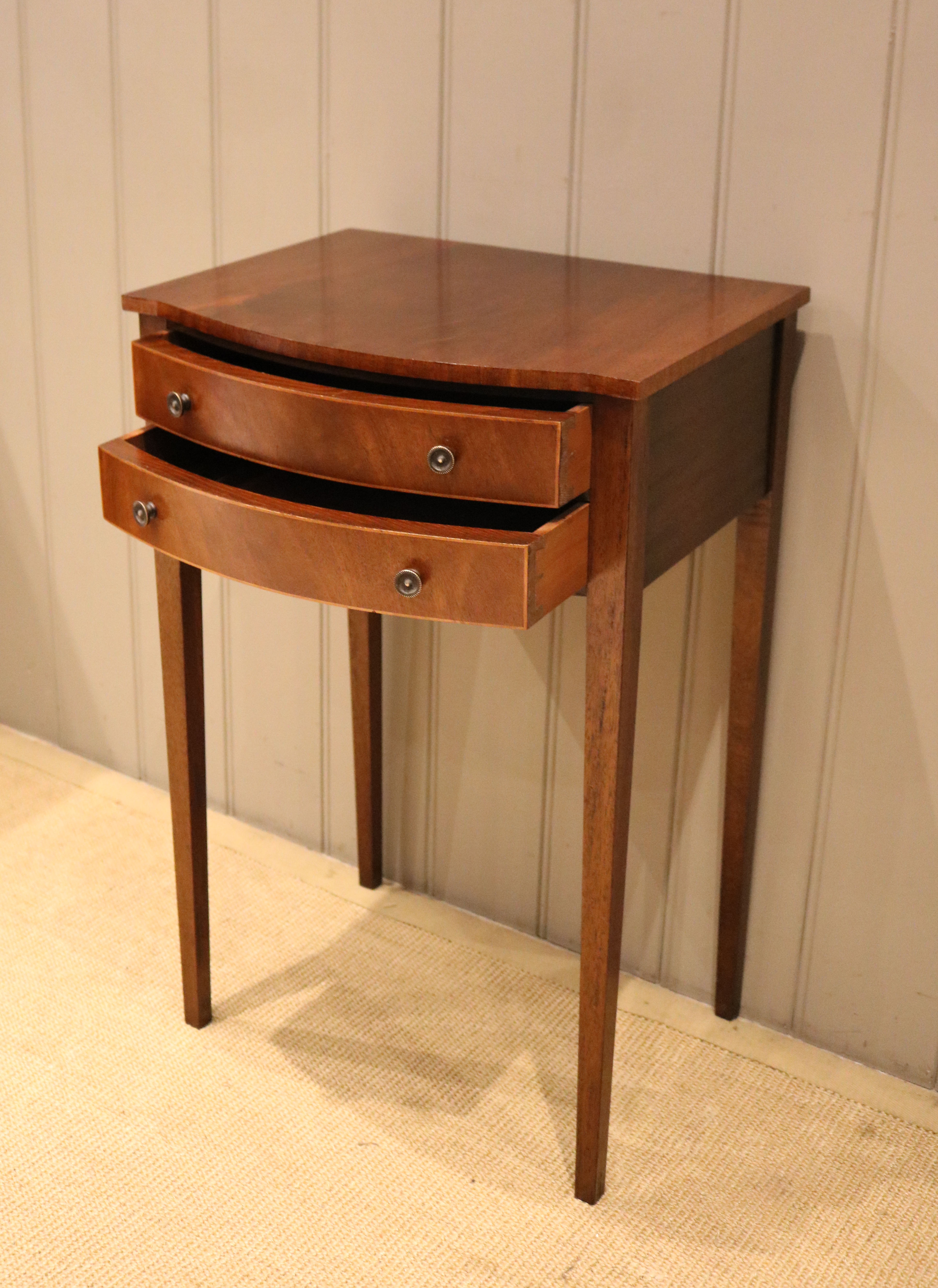 Small Mahogany bow front table having two drawers with boxwood stringing , raised on straight tapering legs